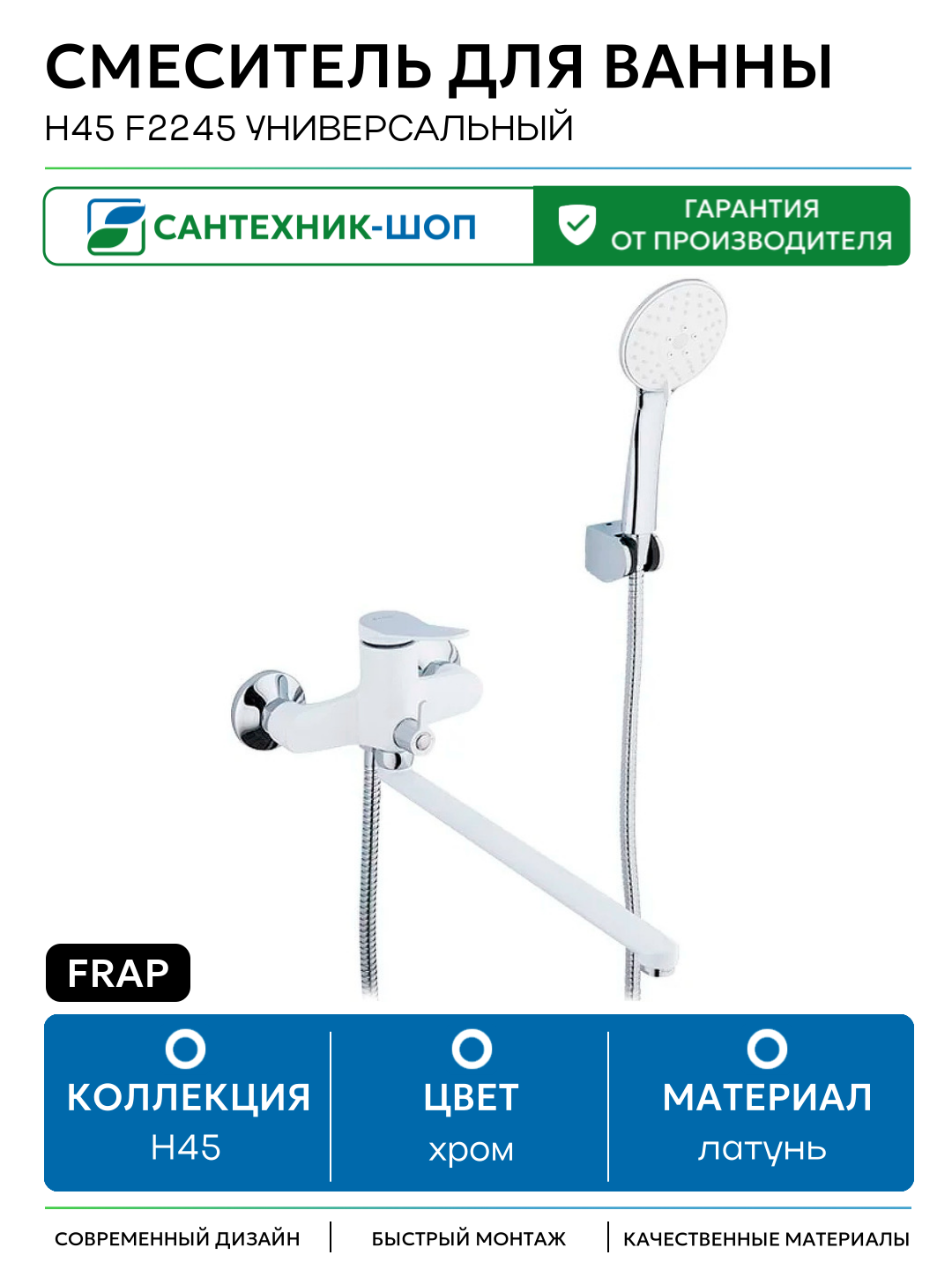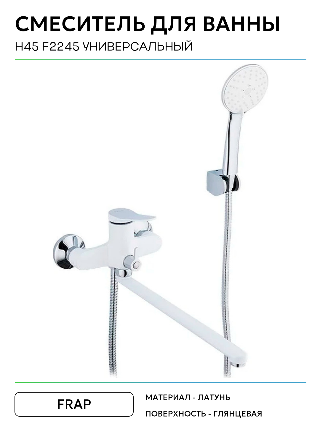 Смеситель для ванны Frap H45 F2245 универсальный Белый хром латунь на стену Китай: сравнение цен, характеристики, фото, актуальное наличие и цены.