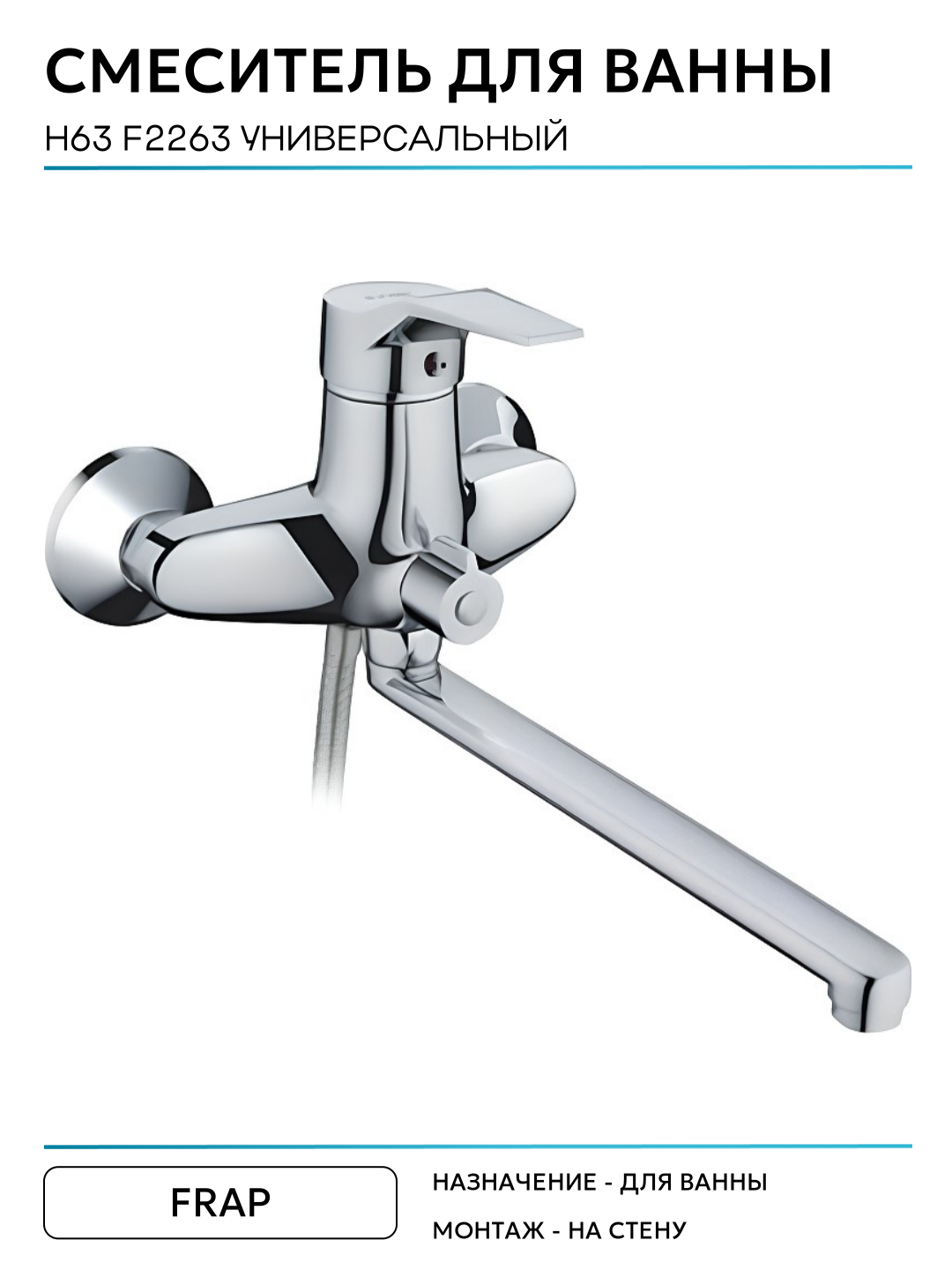 Смеситель для ванны Frap H63 F2263 универсальный Хром латунь на стену Китай: сравнение цен, характеристики, фото, актуальное наличие и цены.