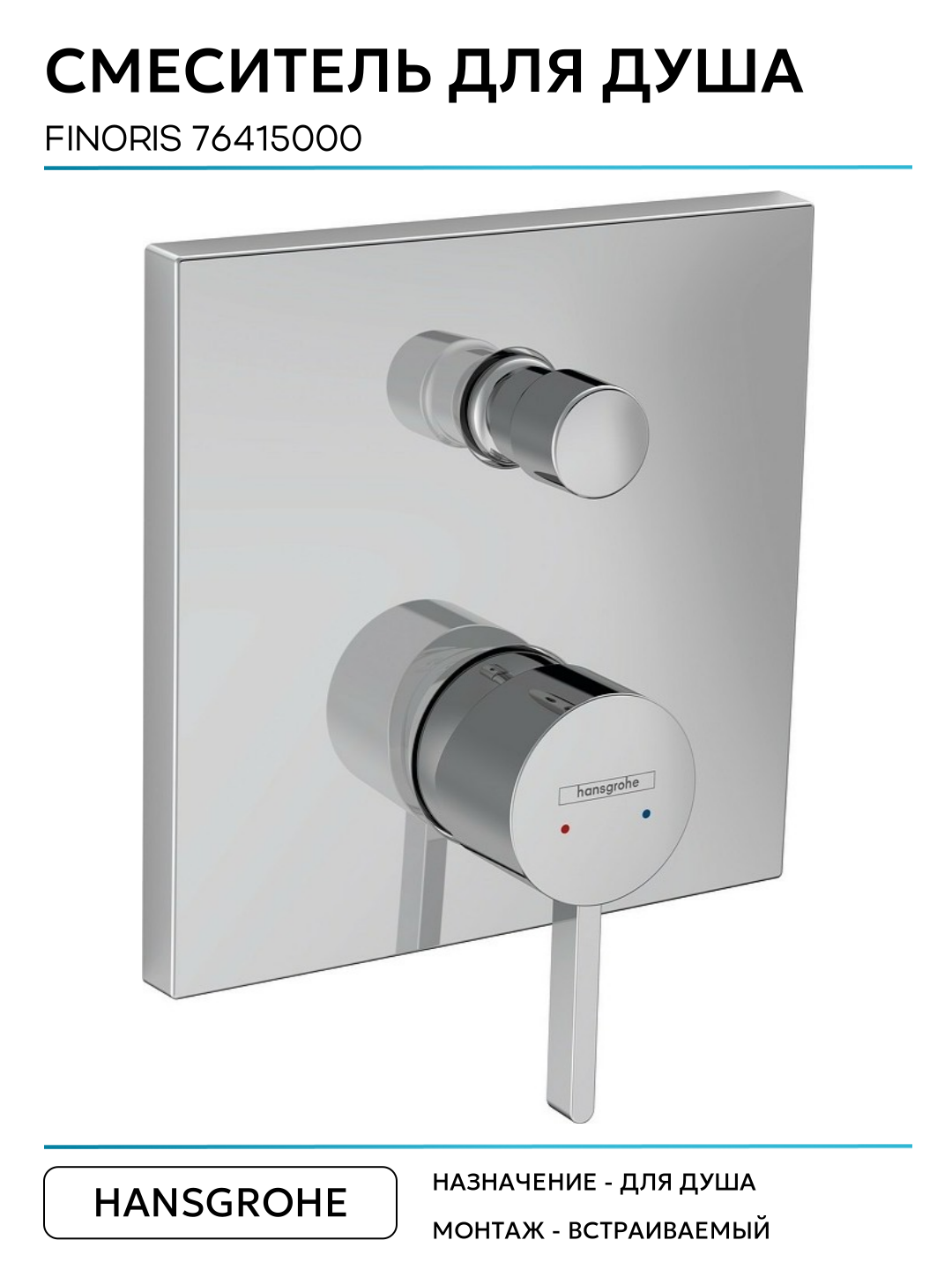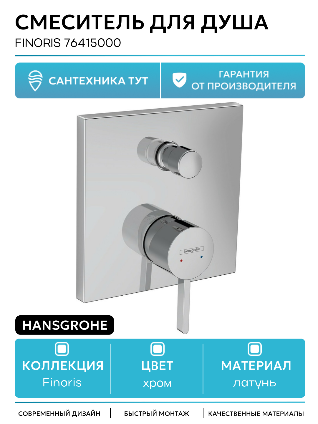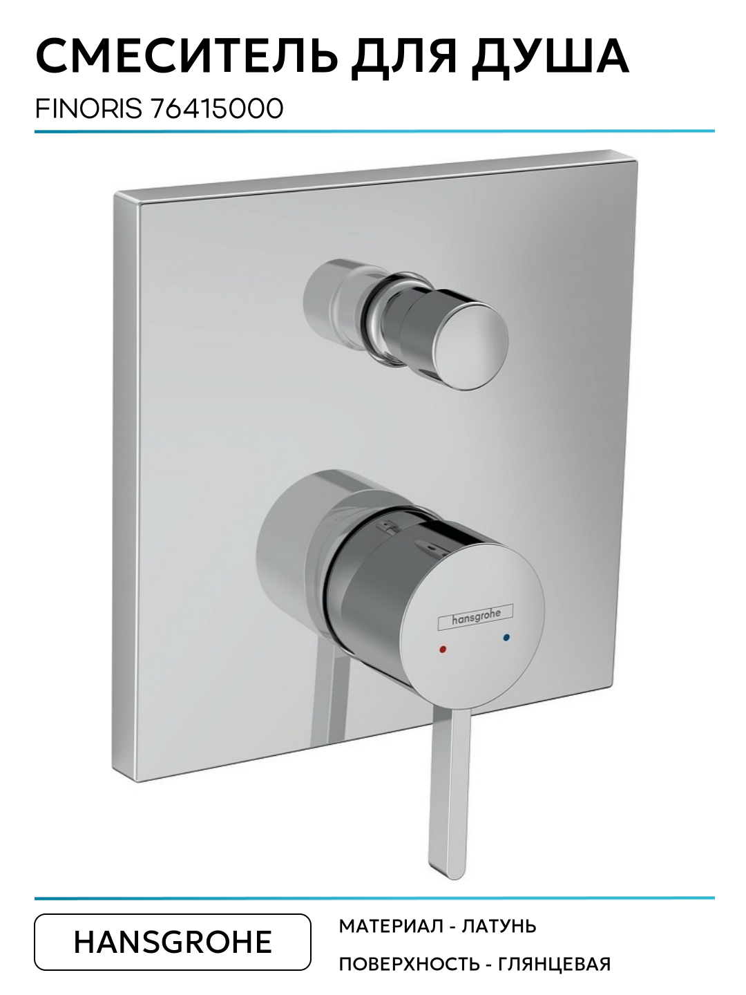 Смеситель для ванны hansgrohe Finoris скрытого монтажа, внешняя часть 76415000, хром: сравнение цен, характеристики, фото, актуальное наличие и цены.