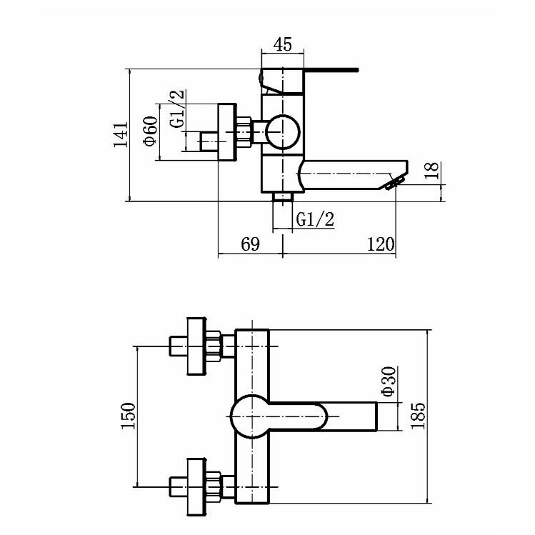 Смеситель с длинным изливом для ванны Kaiser Carlson Lux 11155