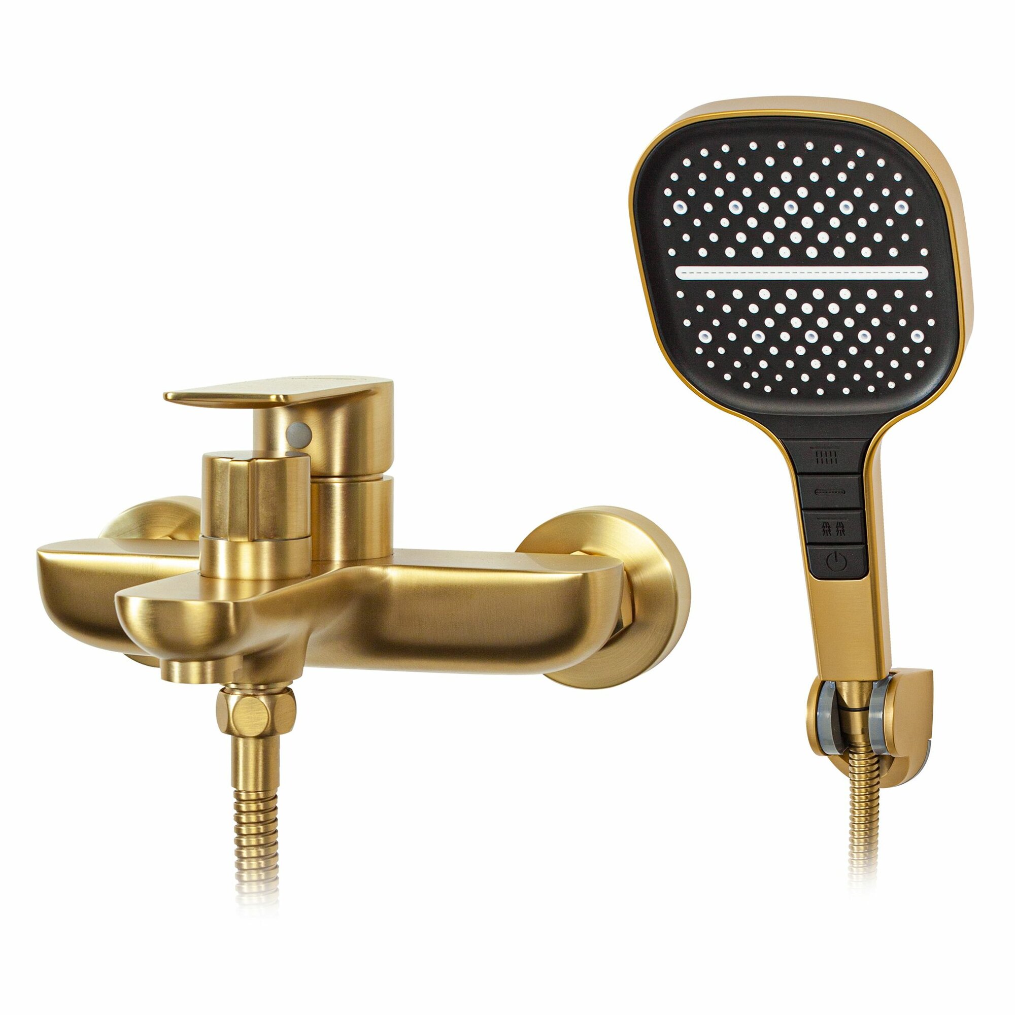 Смеситель для ванны из латуни с ручным душем Hansberge H4099MG (матовое золото): сравнение цен, характеристики, фото, актуальное наличие и цены.