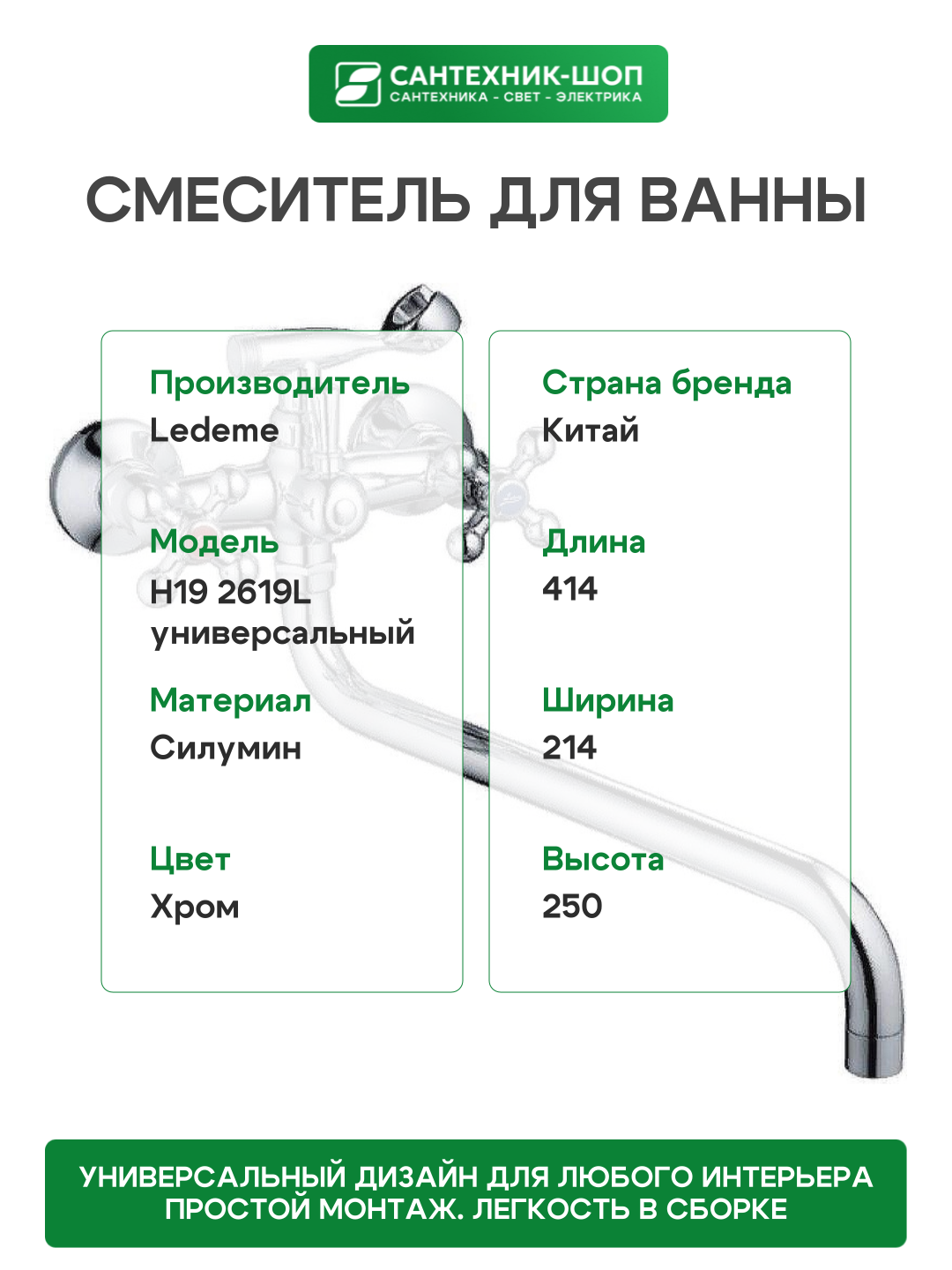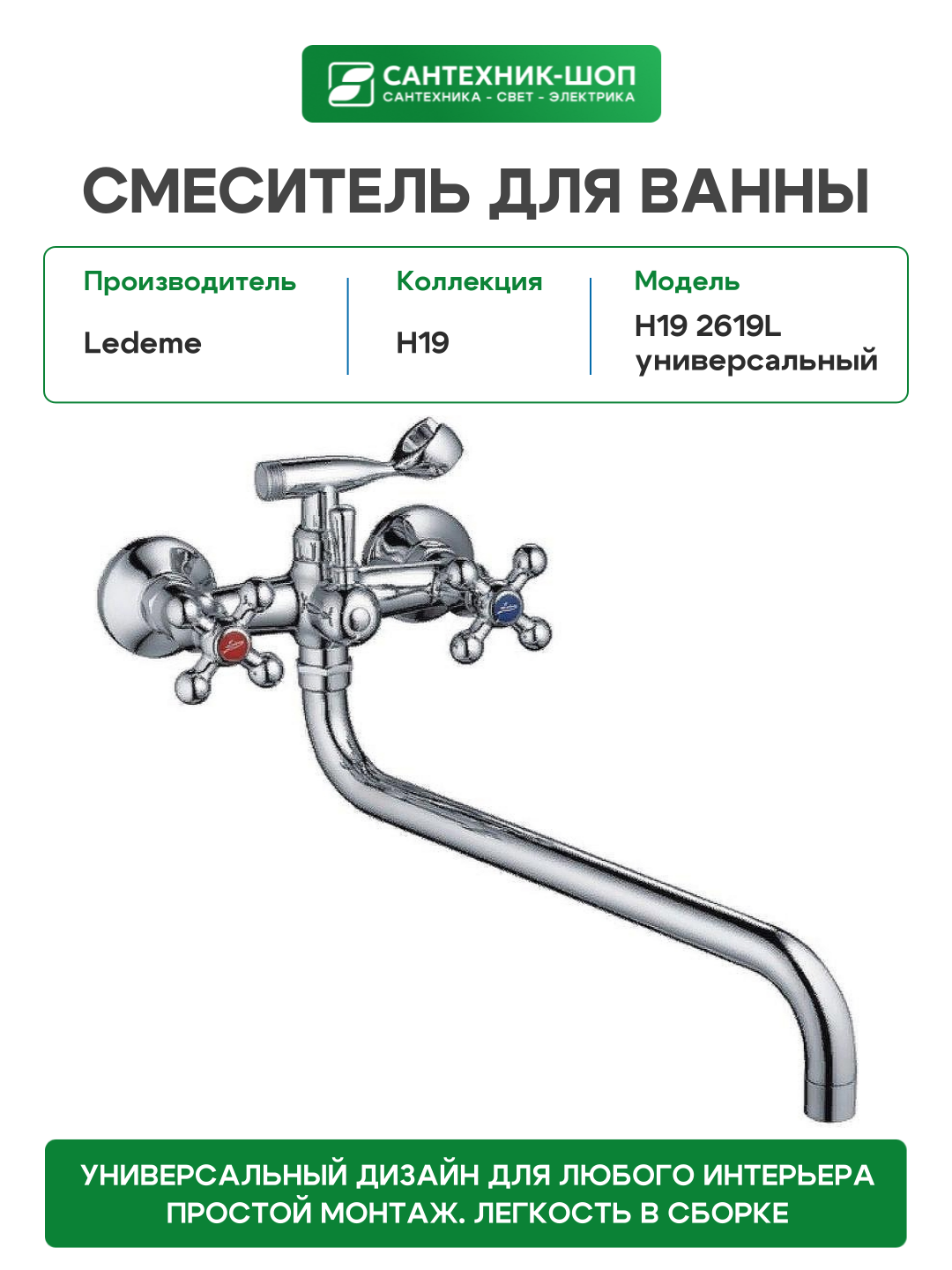 Смеситель для ванны Ledeme H19 2619L универсальный Хром: сравнение цен, характеристики, фото, актуальное наличие и цены.