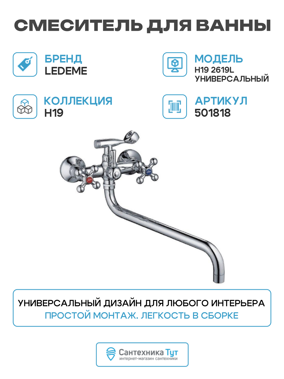 Купить Смеситель для ванны Ledeme H19 2619L универсальный Хром силумин на стену Китай с доставкой по всей России. Смеситель для ванны Ledeme H19 2619L универсальный Хром силумин на стену Китай: сравнение цен, характеристики, фото, актуальное наличие и цены.