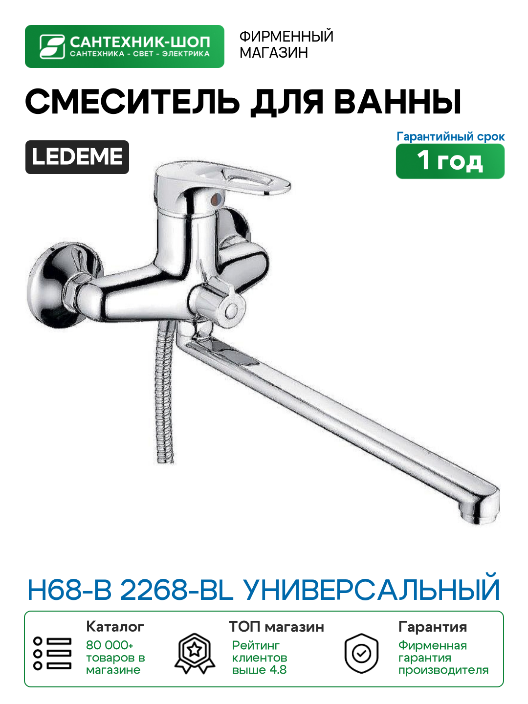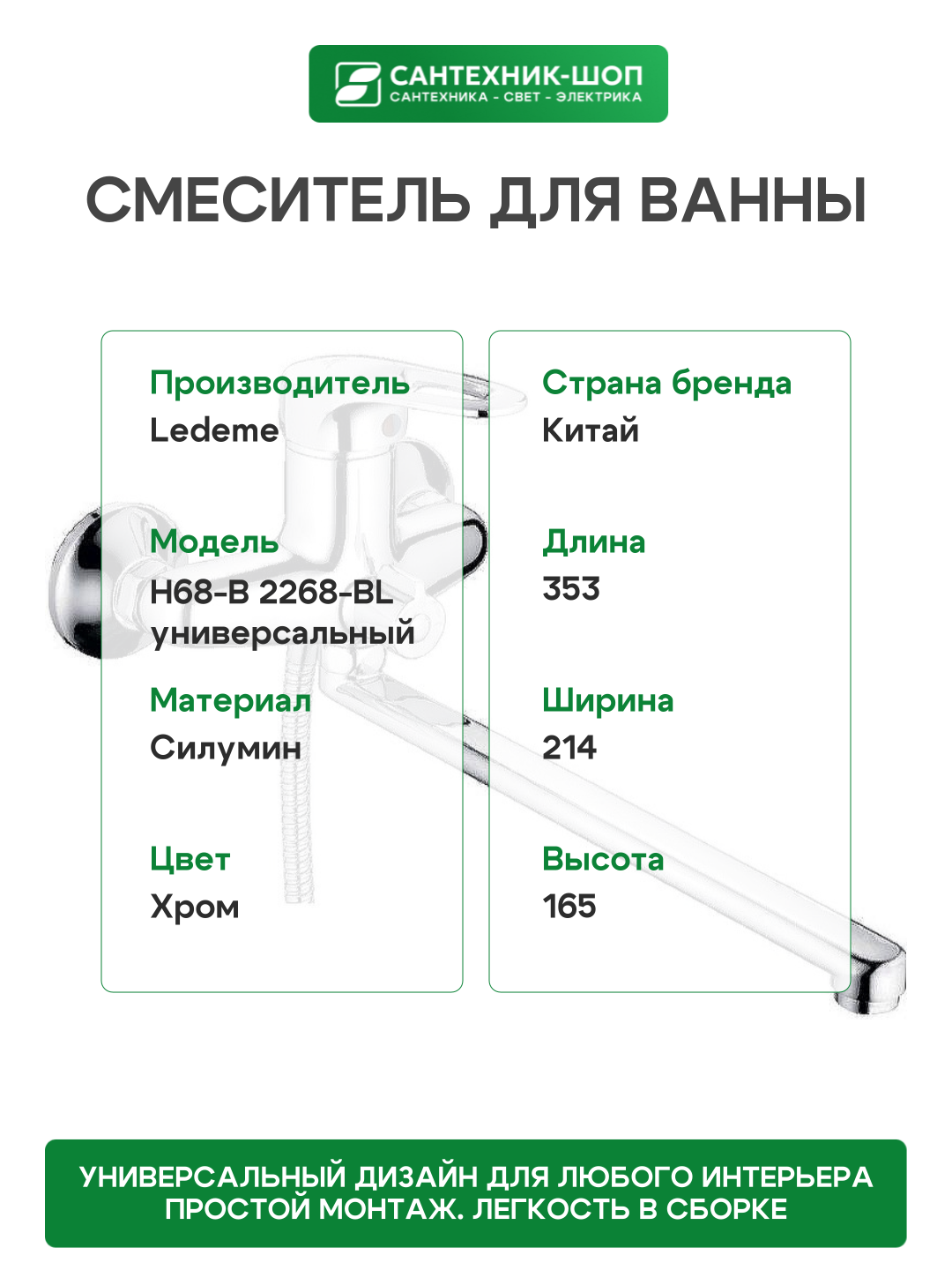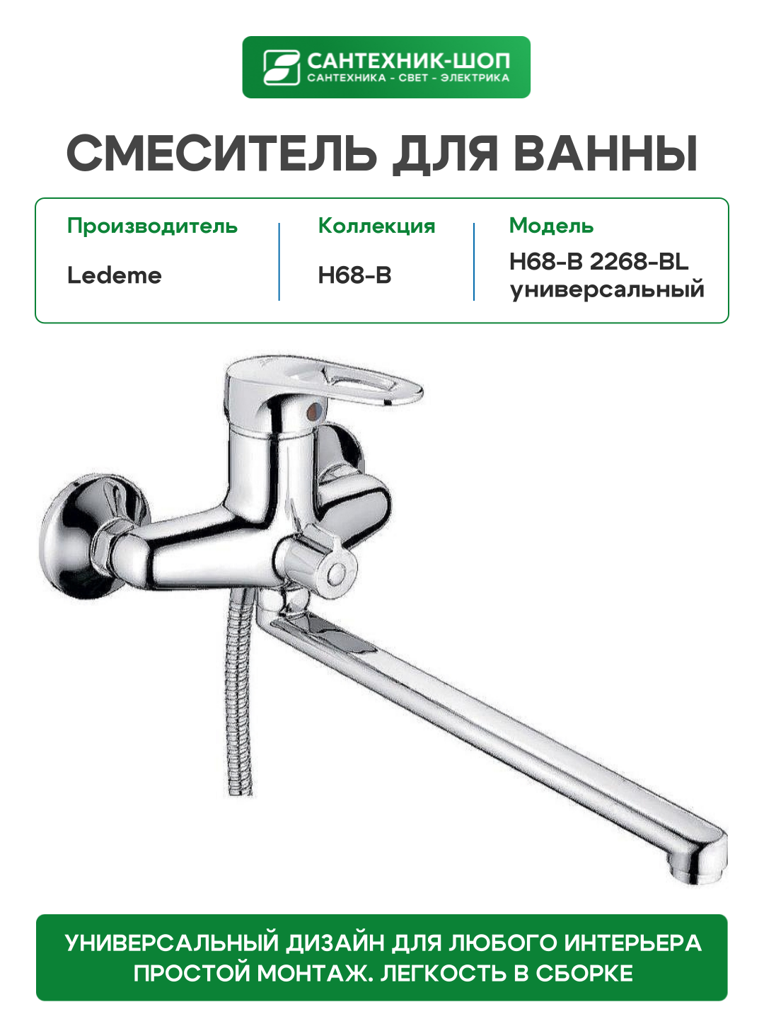 Смеситель для ванны Ledeme H68-В 2268-BL универсальный Хром: сравнение цен, характеристики, фото, актуальное наличие и цены.
