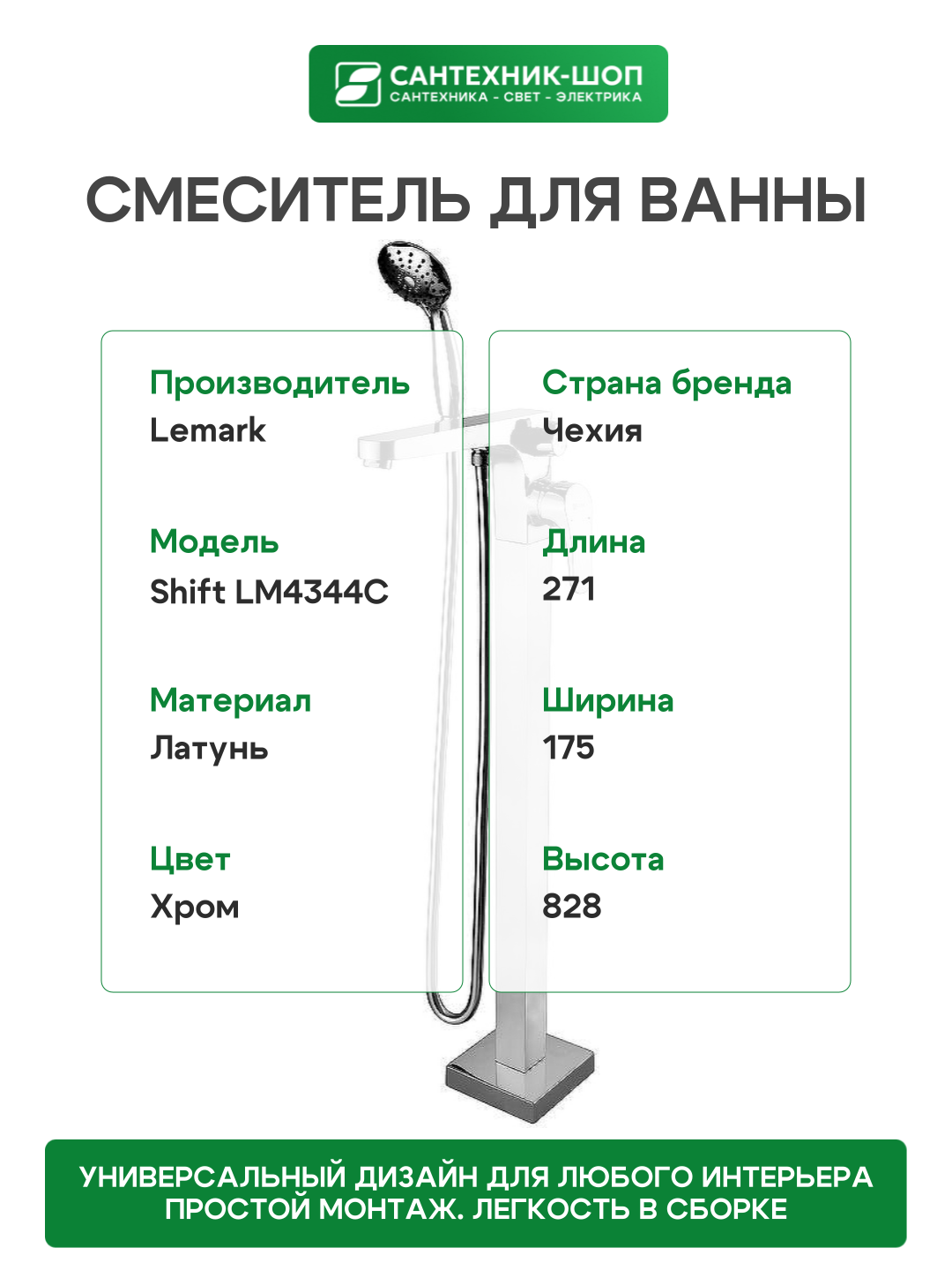 Купить Смеситель для ванны Lemark Shift LM4344C Хром латунь на пол с доставкой по всей России. Смеситель для ванны Lemark Shift LM4344C Хром латунь на пол: сравнение цен, характеристики, фото, актуальное наличие и цены.
