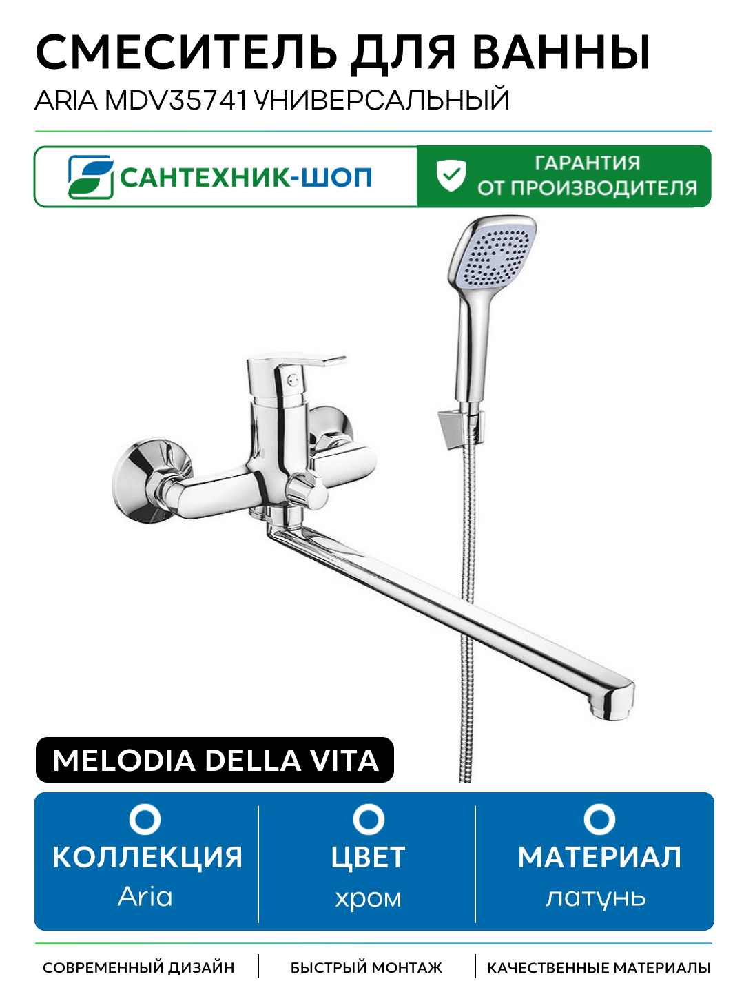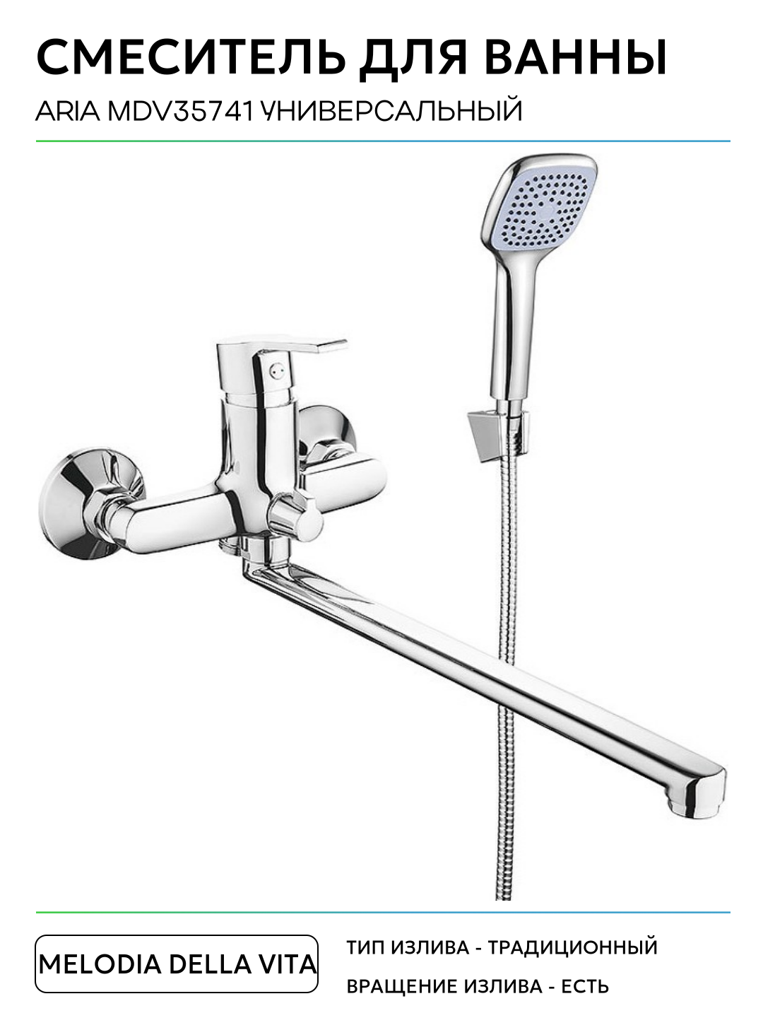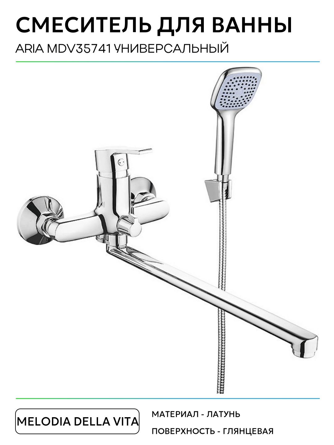 Смеситель для ванны Melodia della vita Aria MDV35741 универсальный Хром латунь на стену Россия: сравнение цен, характеристики, фото, актуальное наличие и цены.