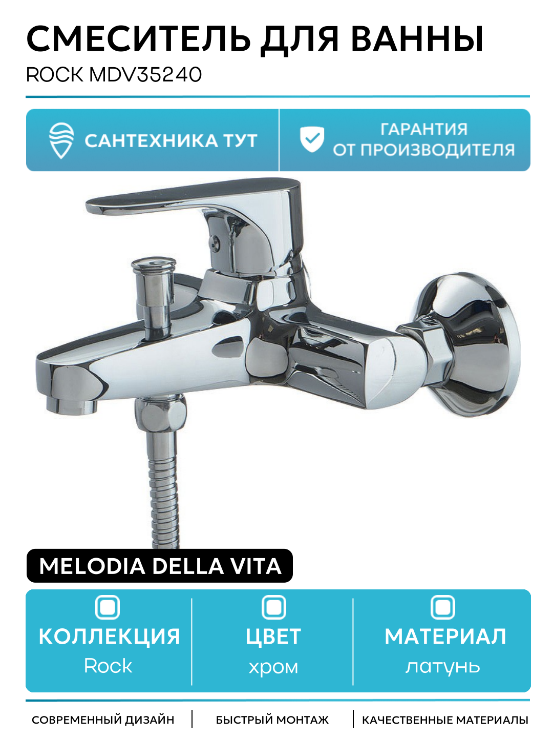 Смеситель для ванны Melodia della vita Rock MDV35240 Хром латунь на стену Россия: сравнение цен, характеристики, фото, актуальное наличие и цены.