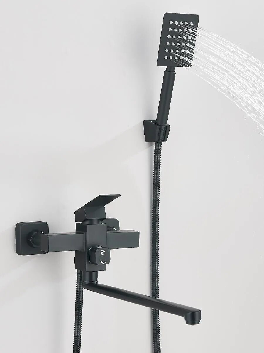 Купить Смеситель для ванны «ououfaucet», двухвентильный, из нержавейки, с душем, черный с доставкой по всей России.