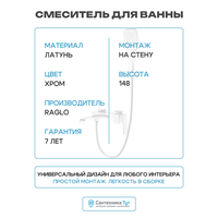 Купить Смеситель для ванны Raglo R02.30 Хром латунь на стену Китай, стильный дизайн с доставкой по всей России. Смеситель для ванны Raglo R02.30 Хром латунь на стену Китай, стильный дизайн: сравнение цен, характеристики, фото, актуальное наличие и цены.