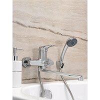 Смеситель для ванны, РМС SL55-006E, длинный поворотный излив, с душевой лейкой и шлангом, рычажное управление, гарантия