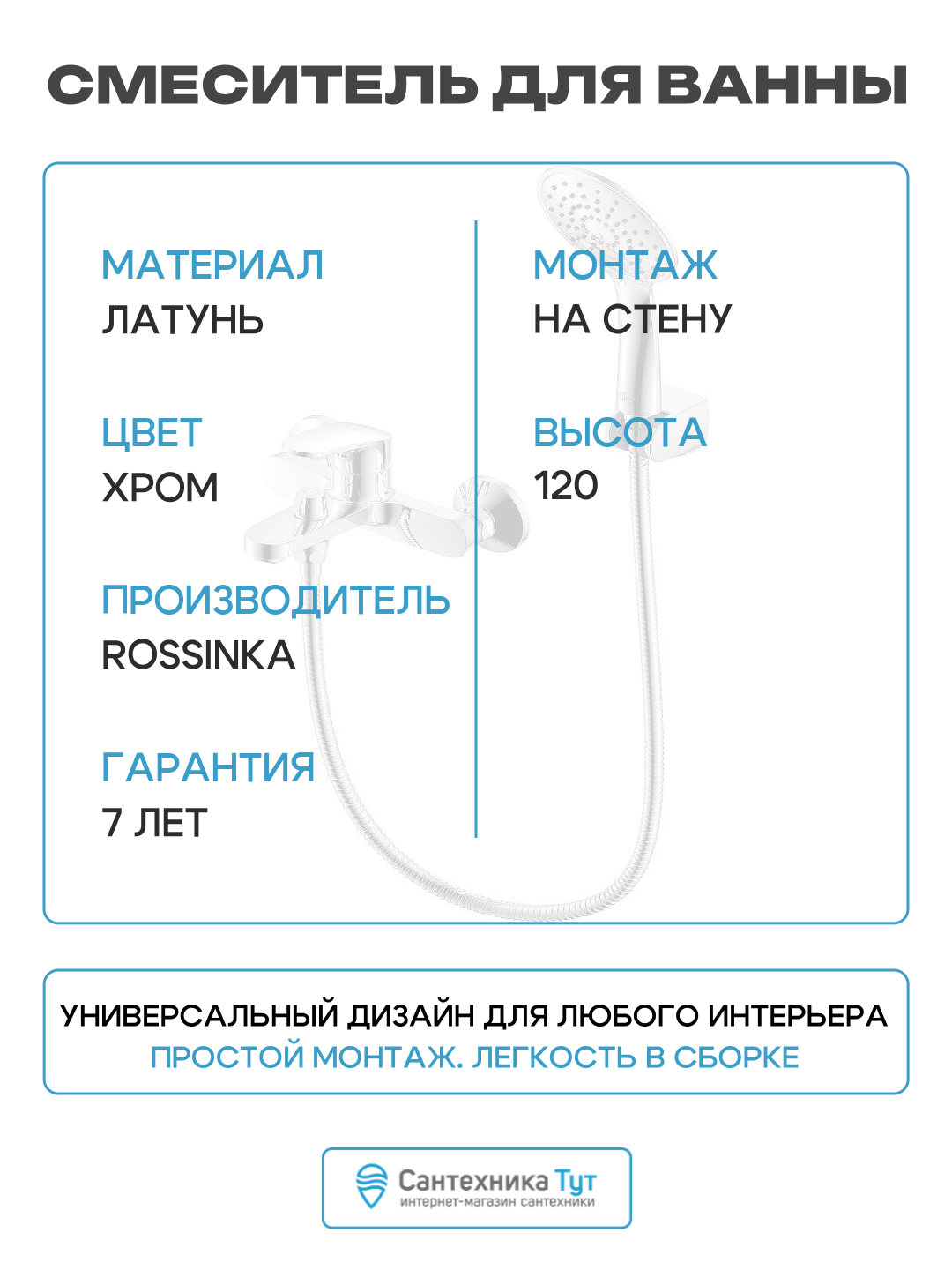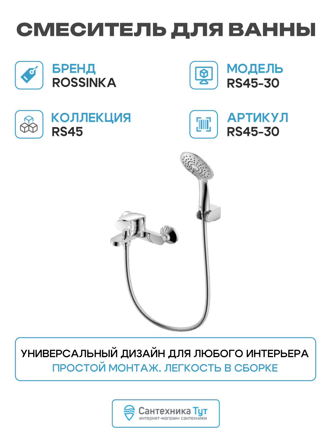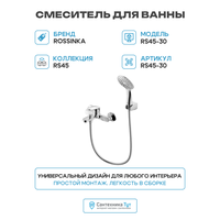 Купить Смеситель для ванны Rossinka RS45-30 Хром с доставкой по всей России.