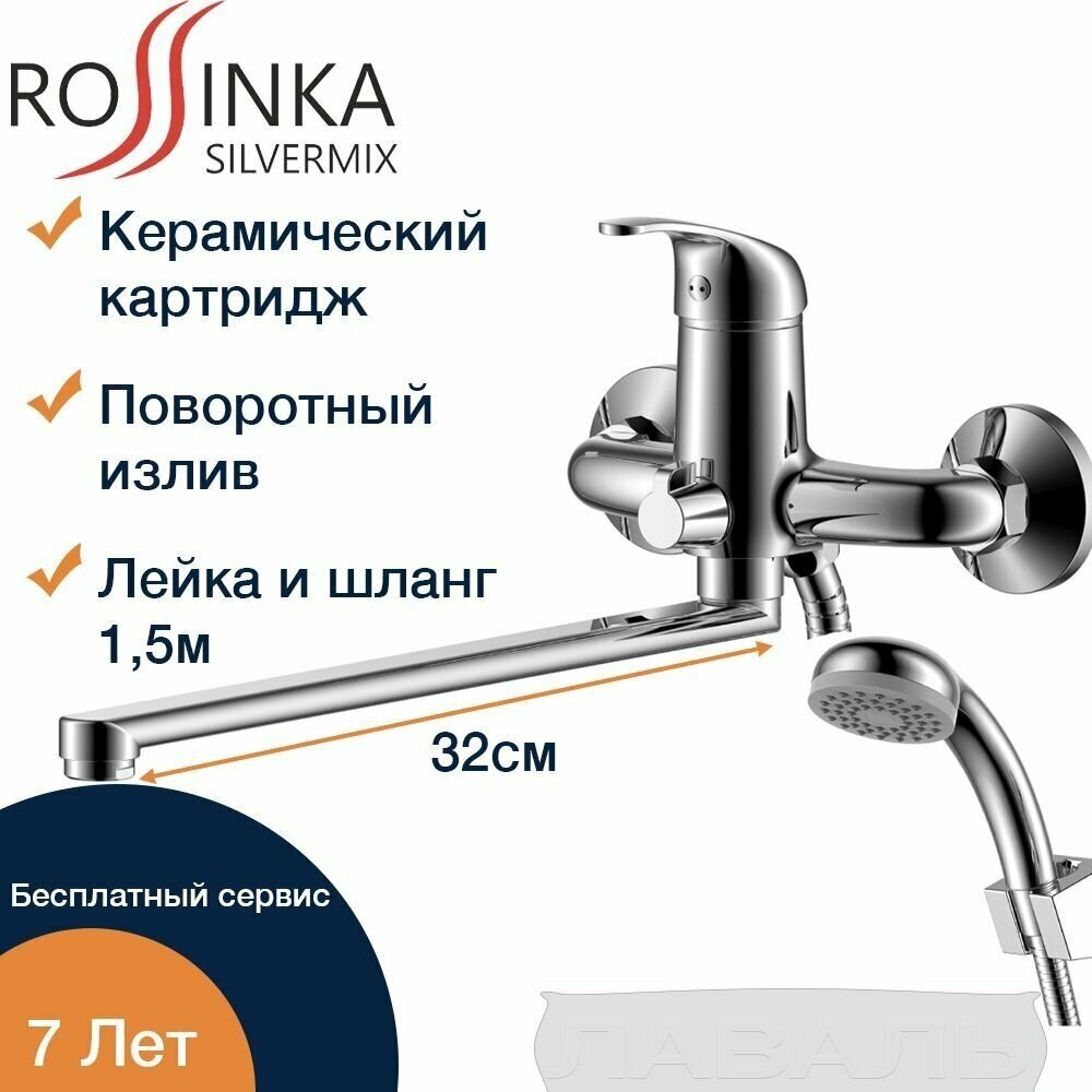 Смеситель для ванны Rossinka Y35 хром однорычажный с длинным изливом с лейкой (Y35-32): сравнение цен, характеристики, фото, актуальное наличие и цены.
