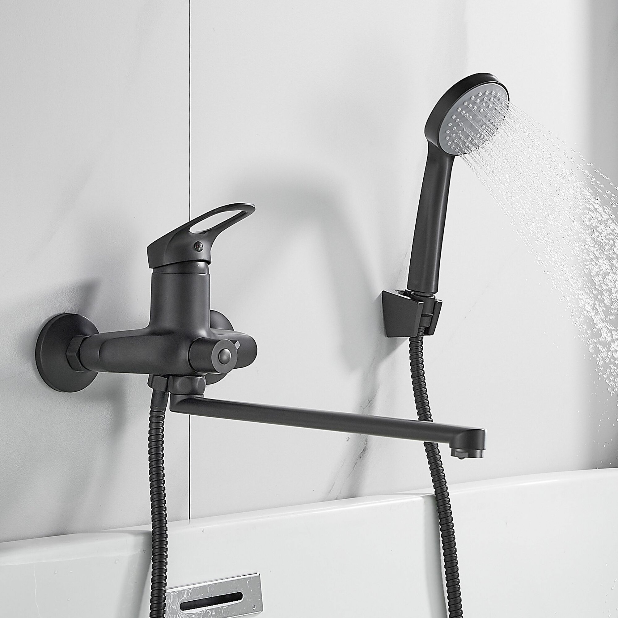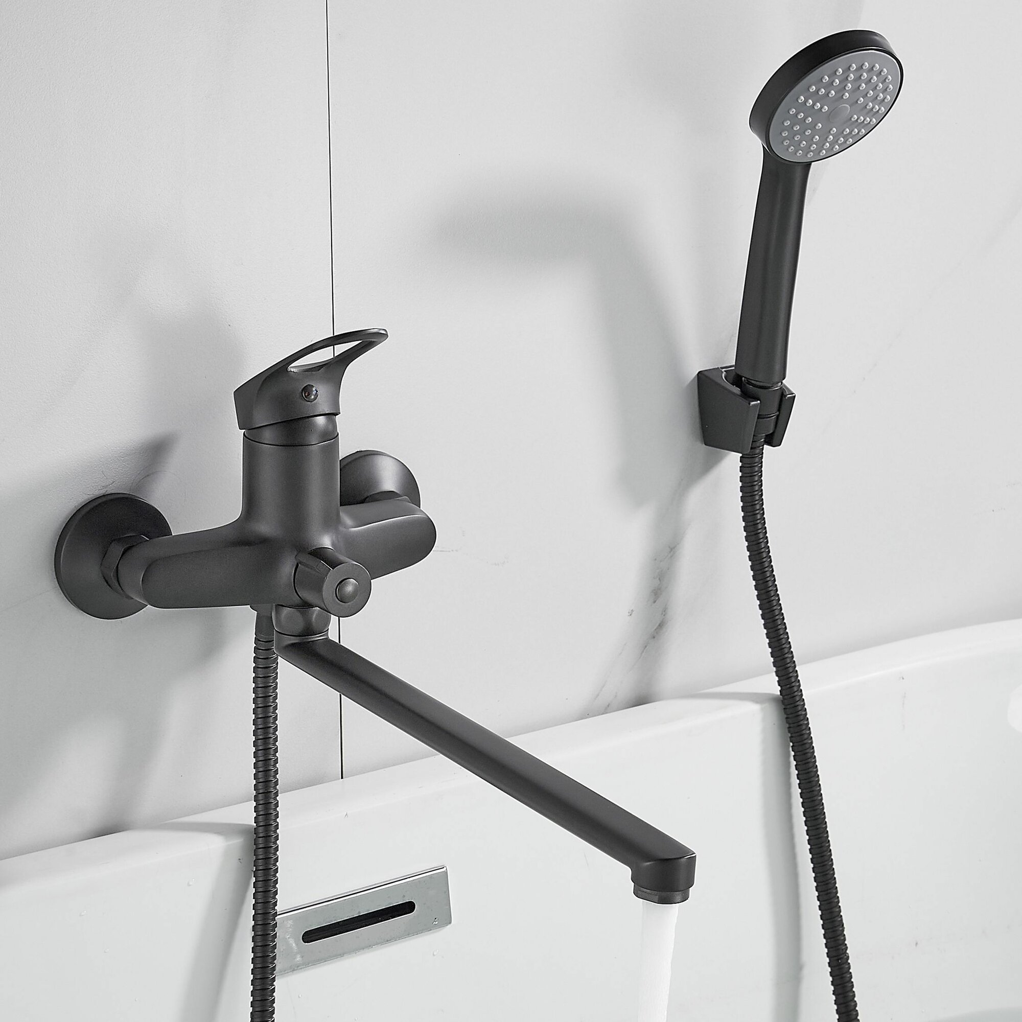 Купить Смеситель для ванны с длинным изливом 35 см и круглой лейкой диаметром 8 см, графит с доставкой по всей России.
