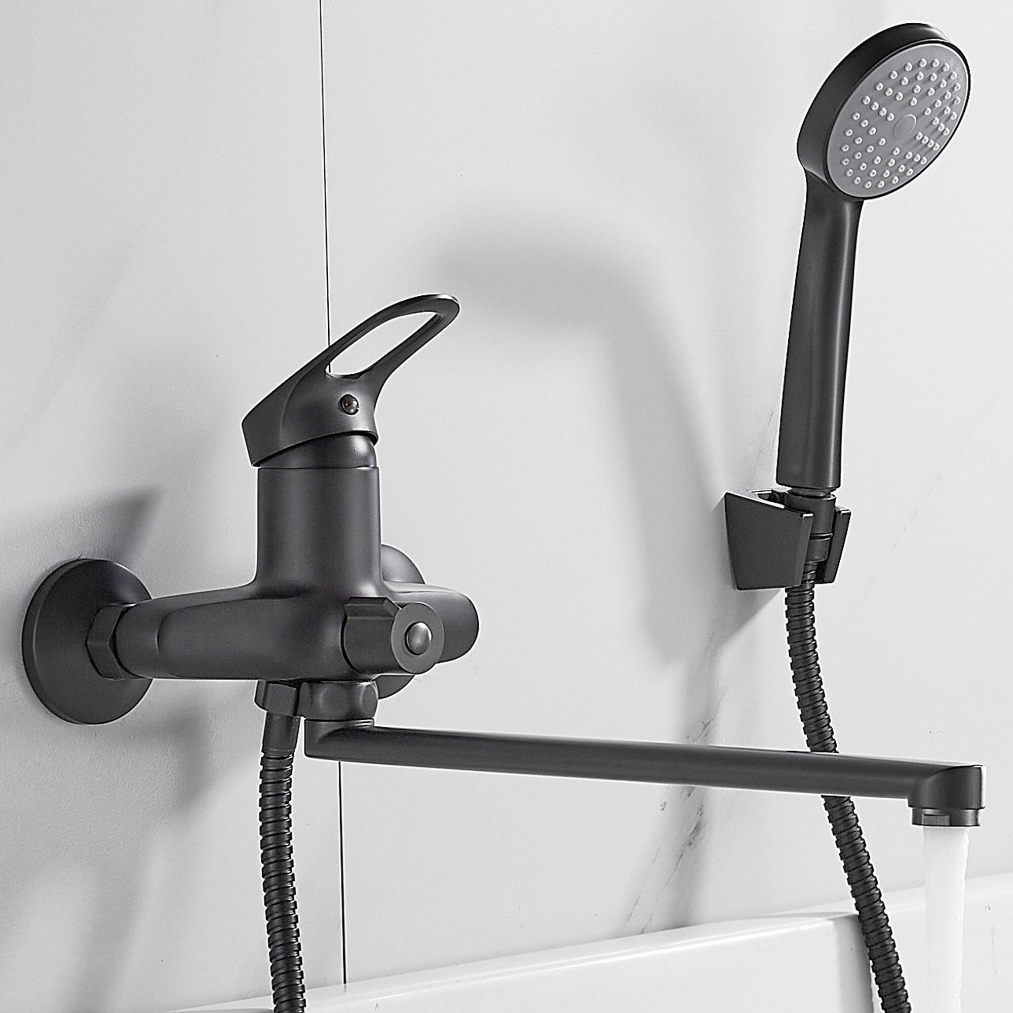 Смеситель для ванны с длинным изливом 35 см и круглой лейкой диаметром 8 см, графит: сравнение цен, характеристики, фото, актуальное наличие и цены.