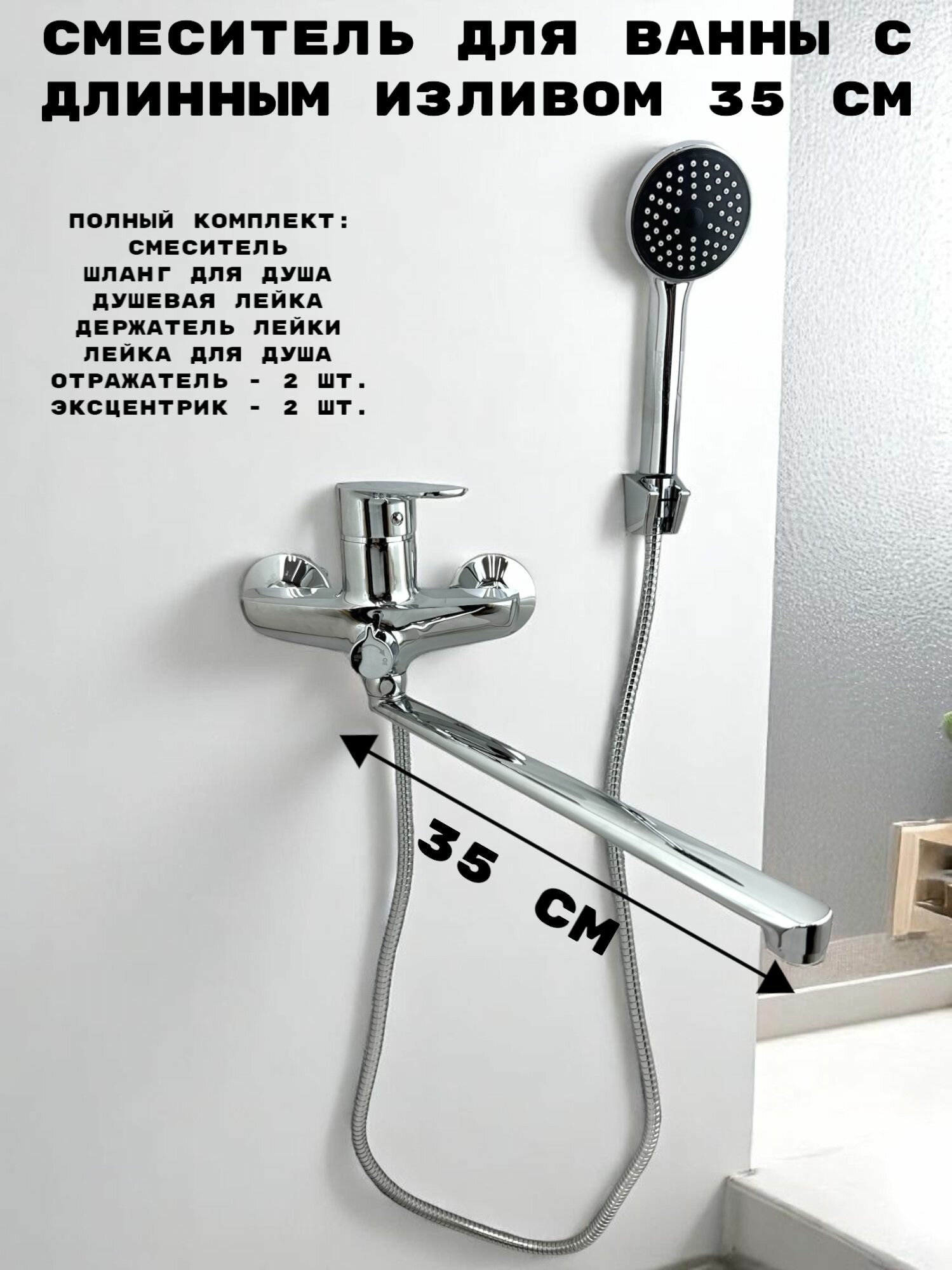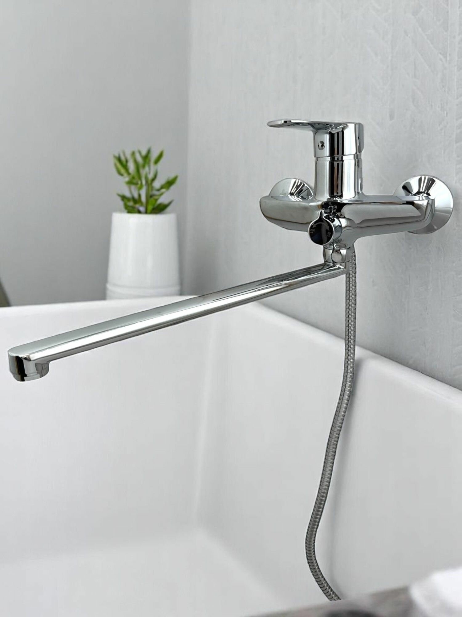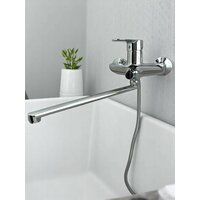 Смеситель для ванны с длинным изливом 35см, однорычажный, переключатель на корпусе, цвет хром: сравнение цен, характеристики, фото, актуальное наличие и цены.