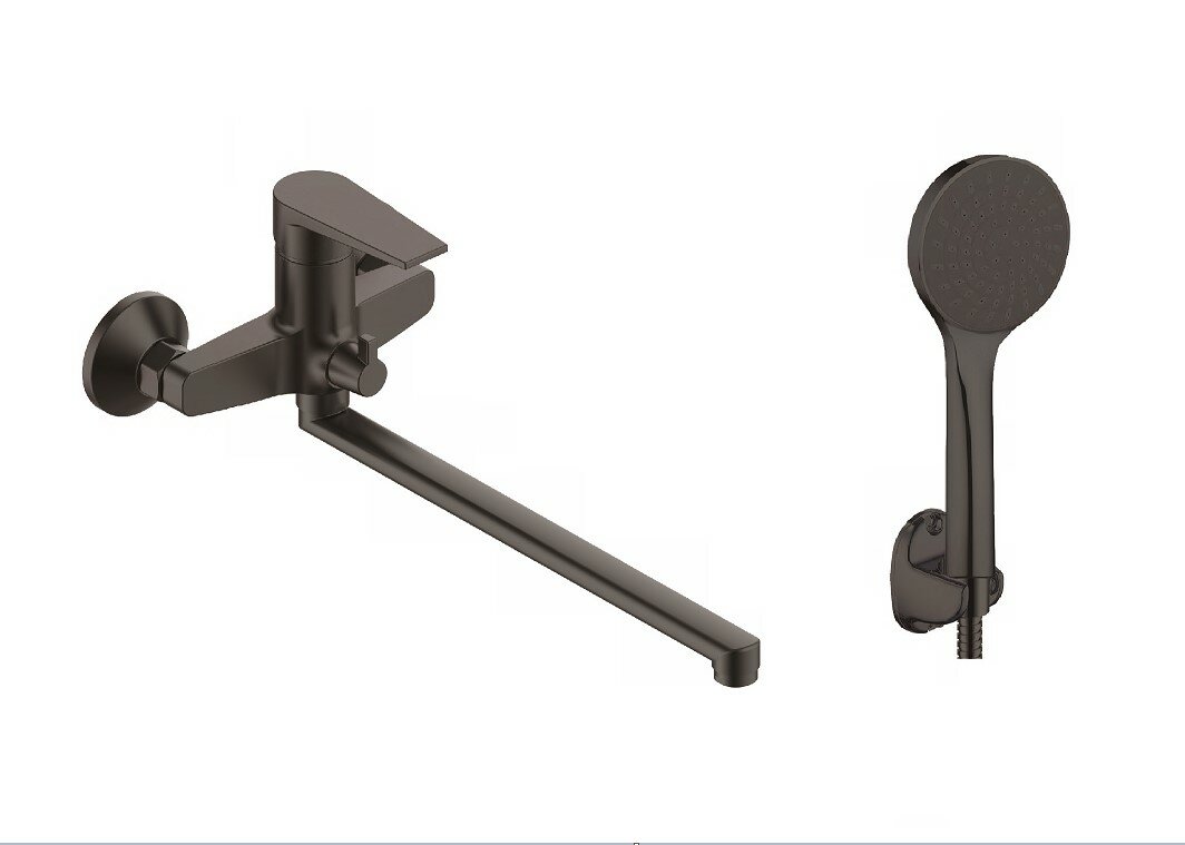 Купить Смеситель для ванны с длинным изливом Budapest black BT31B латунный черный с доставкой по всей России.