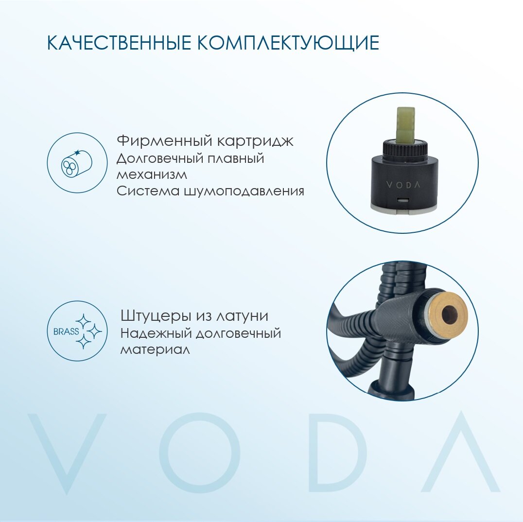 Смеситель изготовлен из латуни, что гарантирует его прочность и долговечность. Материал корпуса обеспечивает устойчивость к коррозии и механическим повреждениям, а также сохраняет свой первоначальный вид на протяжении долгого времени.