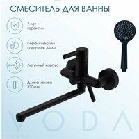 Смеситель оснащен поворотным изливом длиной 322 мм, что позволяет направлять струю воды в нужную сторону. Традиционный вид излива обеспечивает комфортное использование и удобство при мытье ванны.