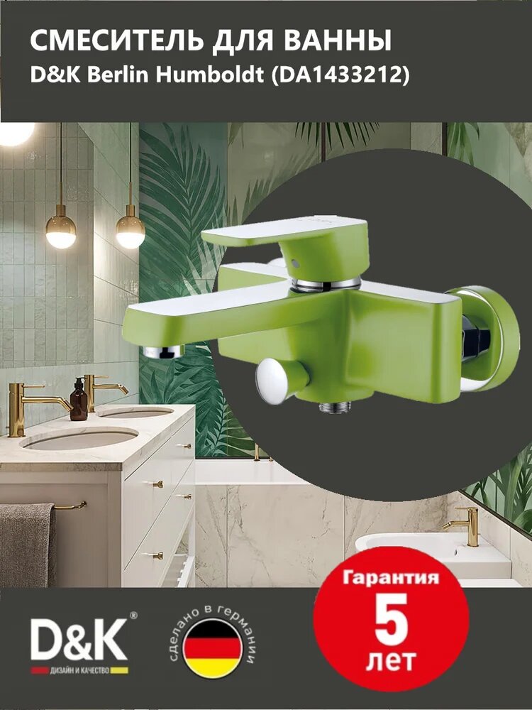 Смеситель для ванны с душем D&K Berlin Humboldt DA1433212 однорычажный, настенный, латунный, вертикальный, зеленый, немецкий: сравнение цен, характеристики, фото, актуальное наличие и цены.