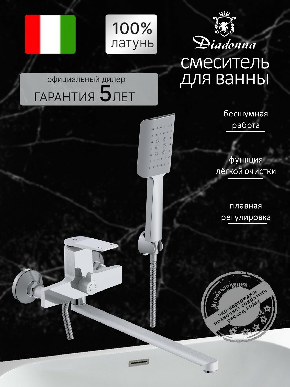 Смеситель для ванны с душем Diadonna D169-22W с длинным изливом, кран в ванную, латунь белый: сравнение цен, характеристики, фото, актуальное наличие и цены.