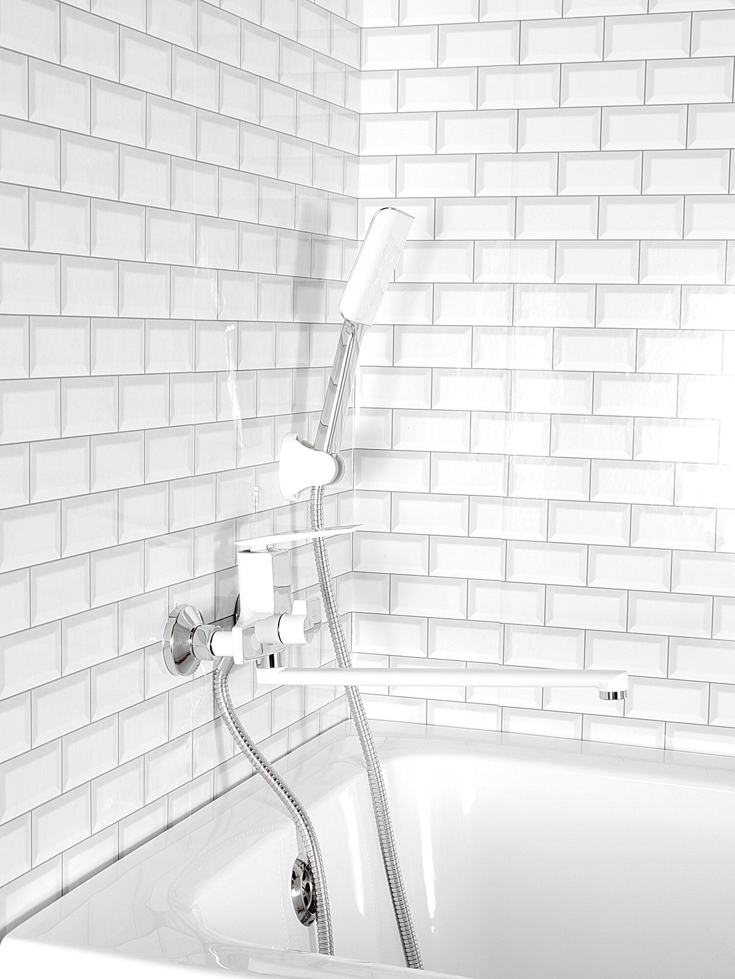 Купить Смеситель для ванны с душем Diadonna D169-22W с длинным изливом, кран в ванную, латунь белый с доставкой по всей России.