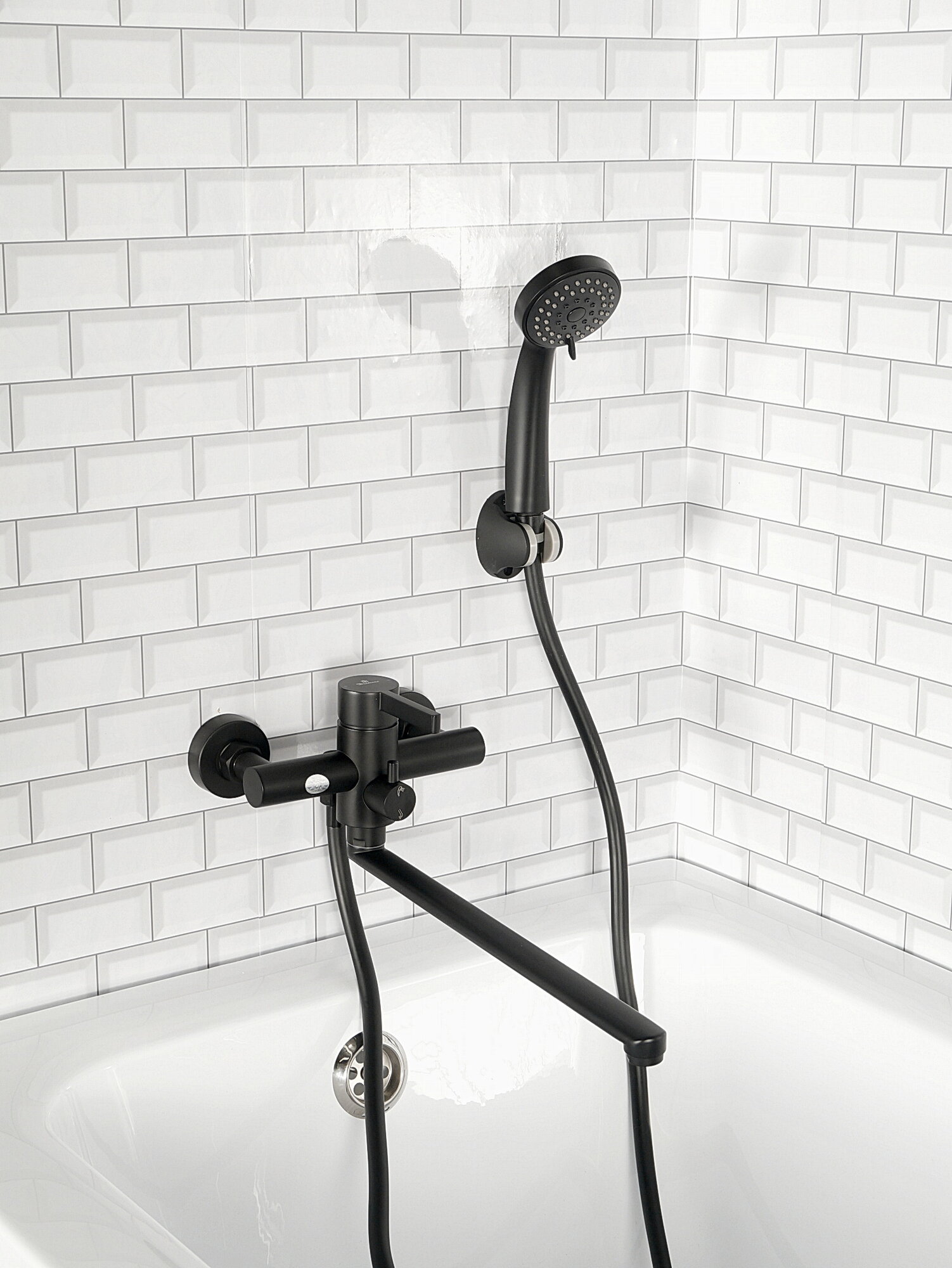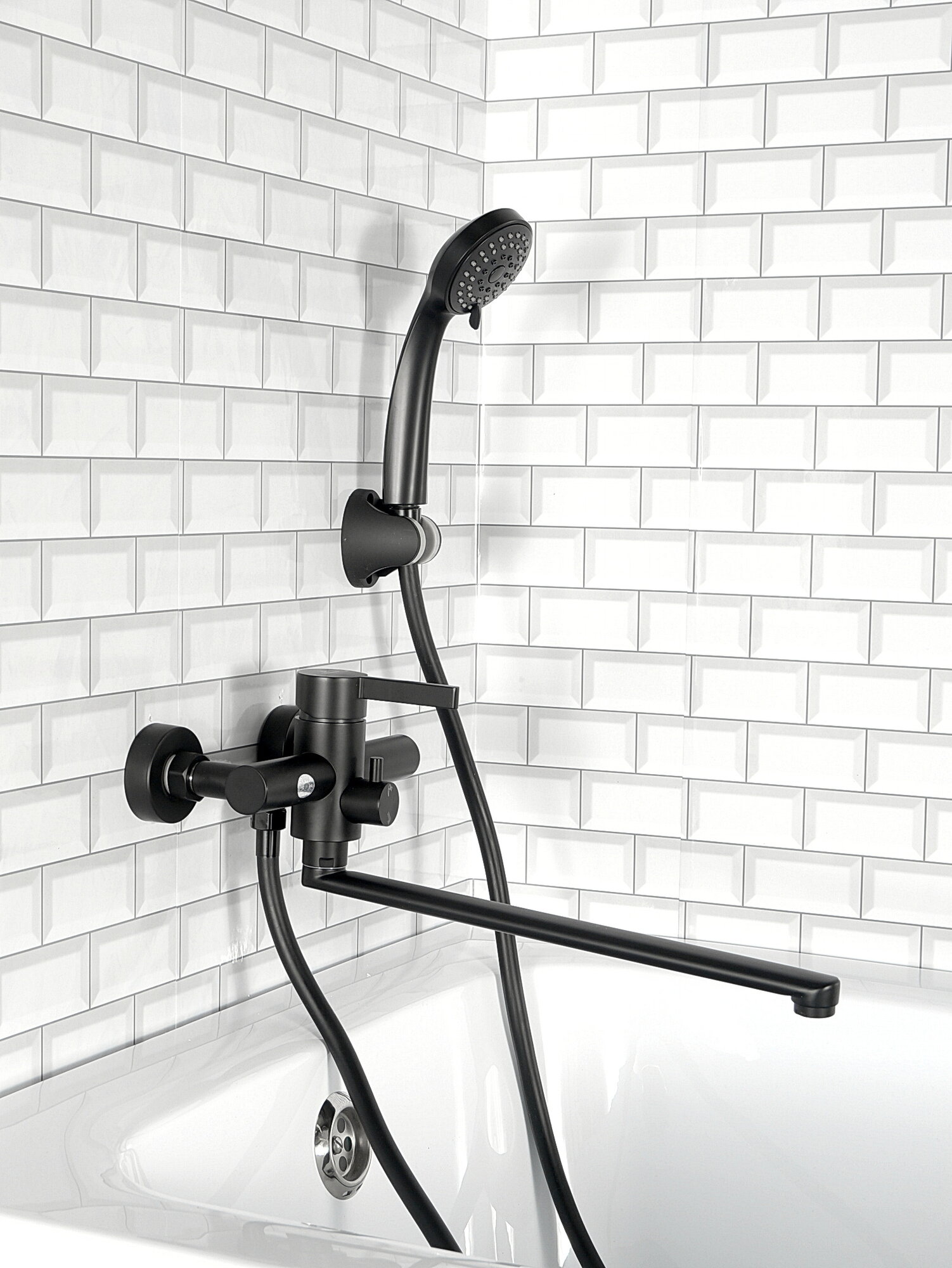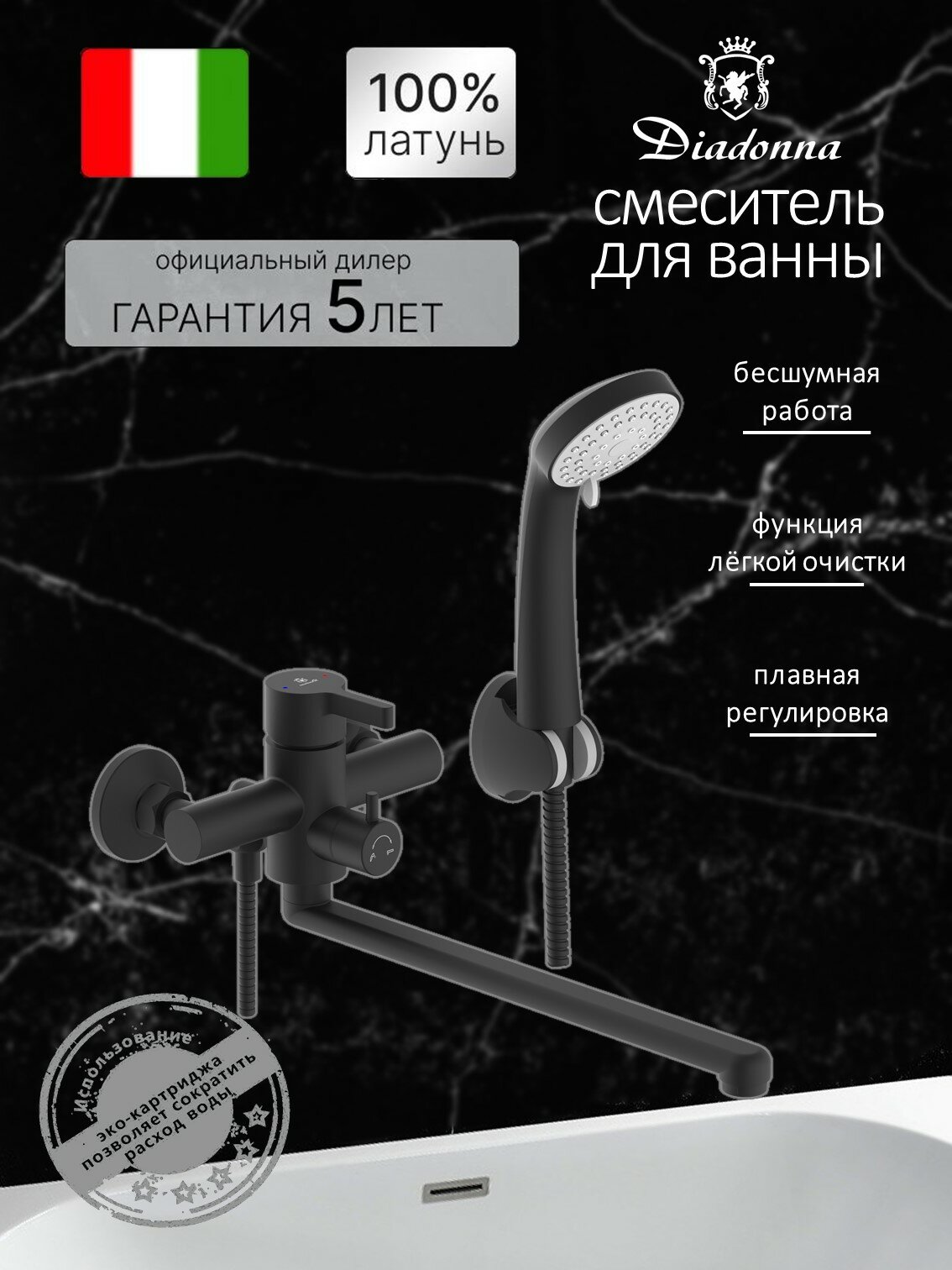 Купить Смеситель для ванны с душем Diadonna D236-22BL с длинным изливом, кран в ванную, нержавеющая сталь черный с доставкой по всей России.