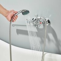 Смеситель для ванны с душем/ длинным изливом/ двухвентильный/ кран в ванную хром: сравнение цен, характеристики, фото, актуальное наличие и цены.