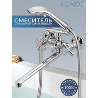 Купить Смеситель для ванны с душем двухвентильный, кран в ванную RICARDO R7034-1, цвет: хром с доставкой по всей России.