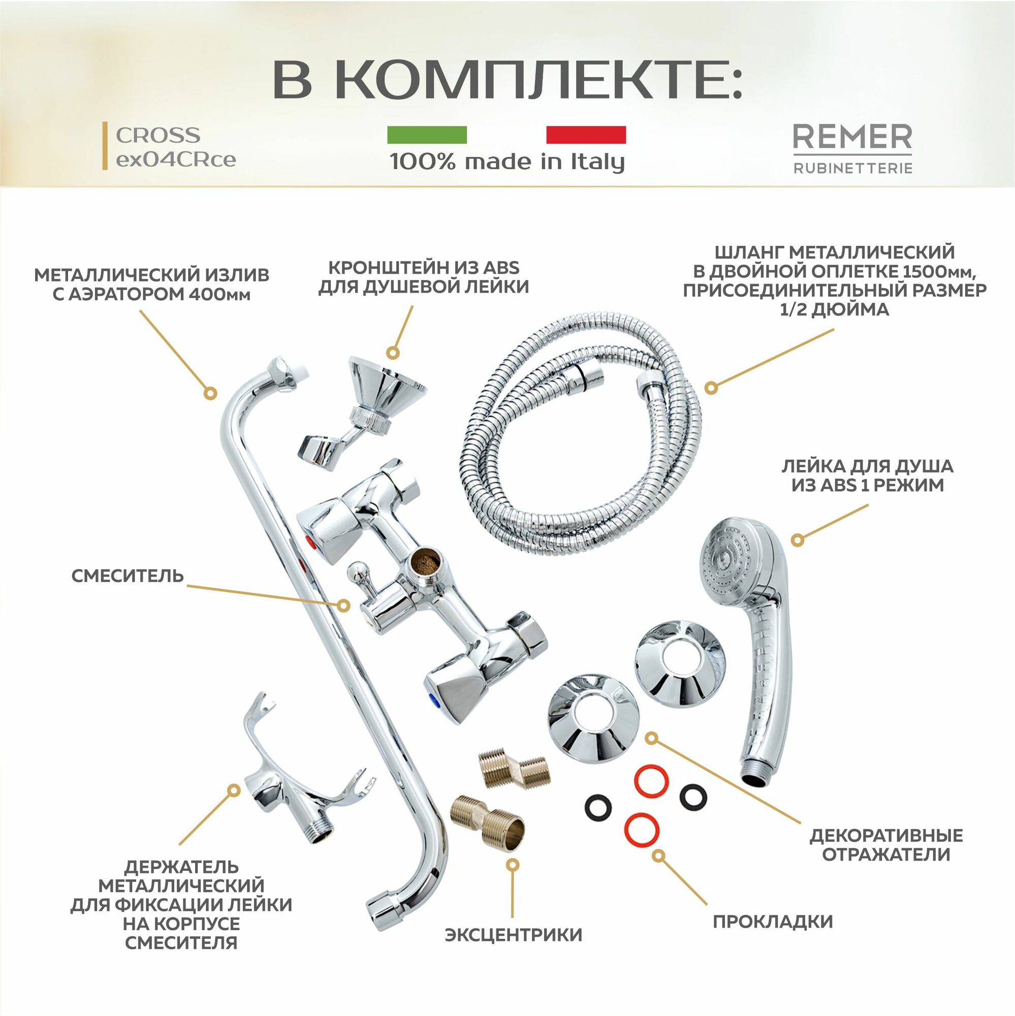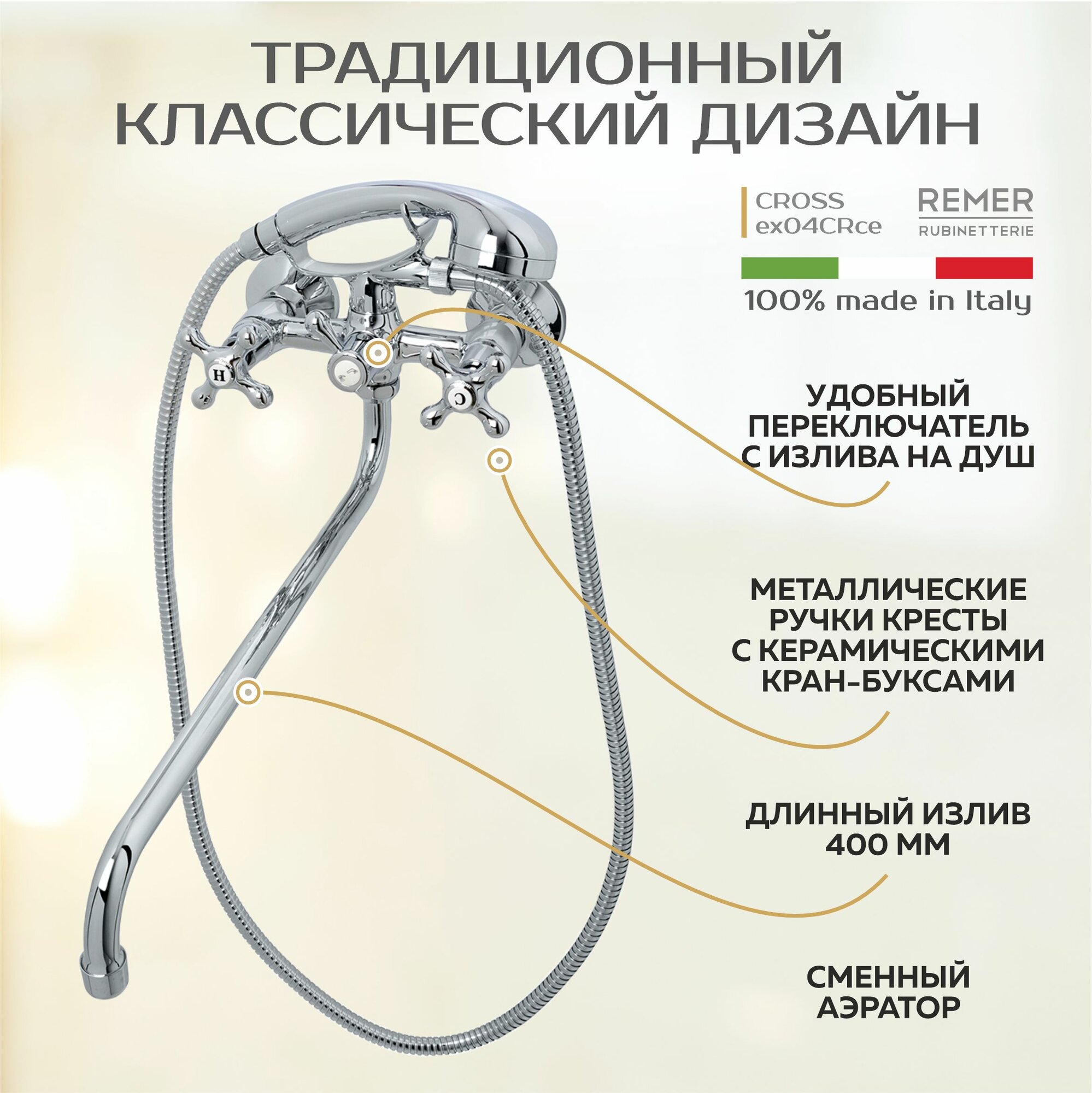 Смеситель для ванны с душем и длинным изливом 400 мм серия CROSS модель ex04CRce REMER хром: сравнение цен, характеристики, фото, актуальное наличие и цены.