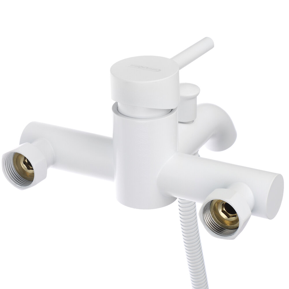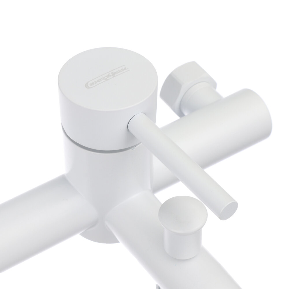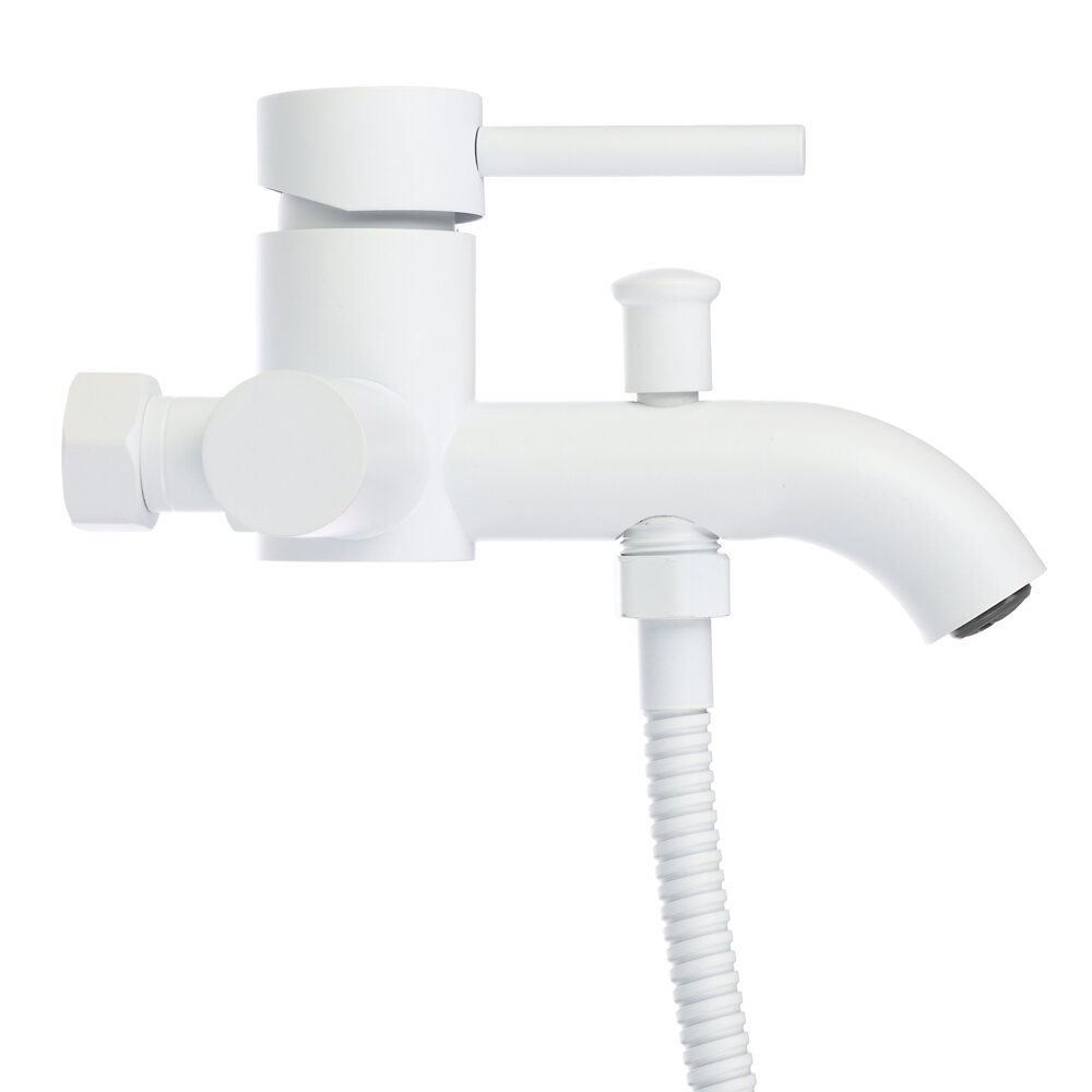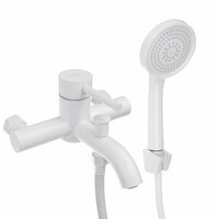 Купить Смеситель для ванны с душем, короткий излив, картридж 35мм, нерж. сталь, белый с доставкой по всей России.