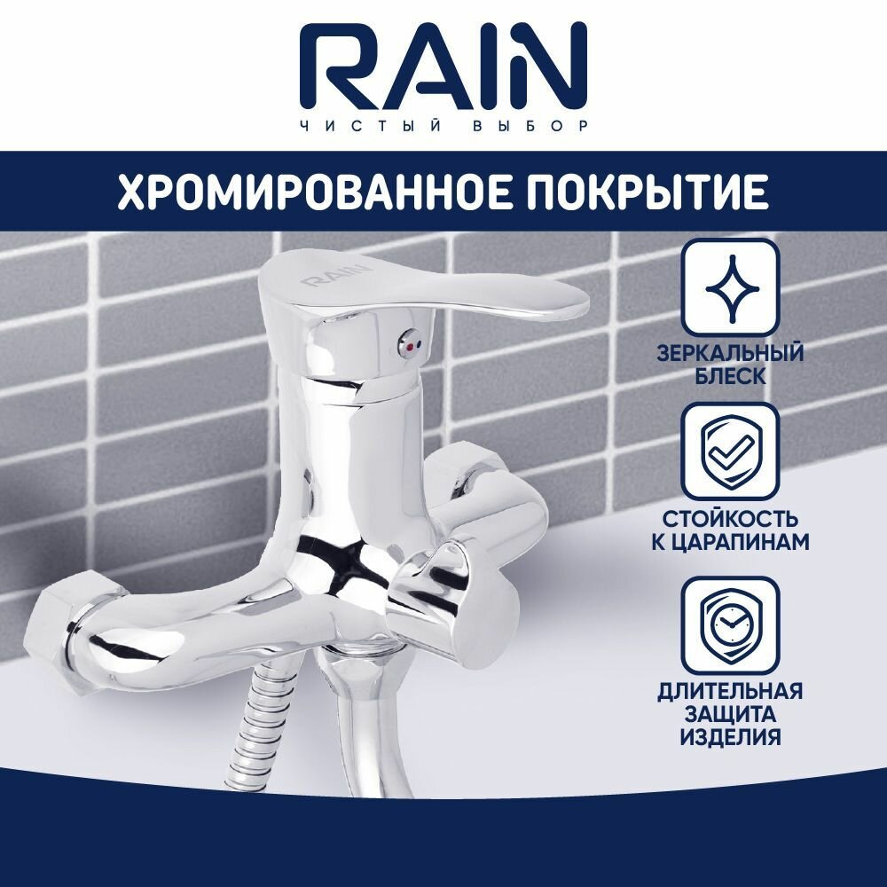 Смеситель для ванны с душем однорычажный RAIN, длинный излив, лейка и шланг для душа в комплекте: сравнение цен, характеристики, фото, актуальное наличие и цены.