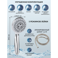 | Комплектация | Смеситель, излив для набора воды, лейка 5 режимов, набор эксцентриков, настенный держатель, отражатель, ручной душ, шланг для душа 150см |