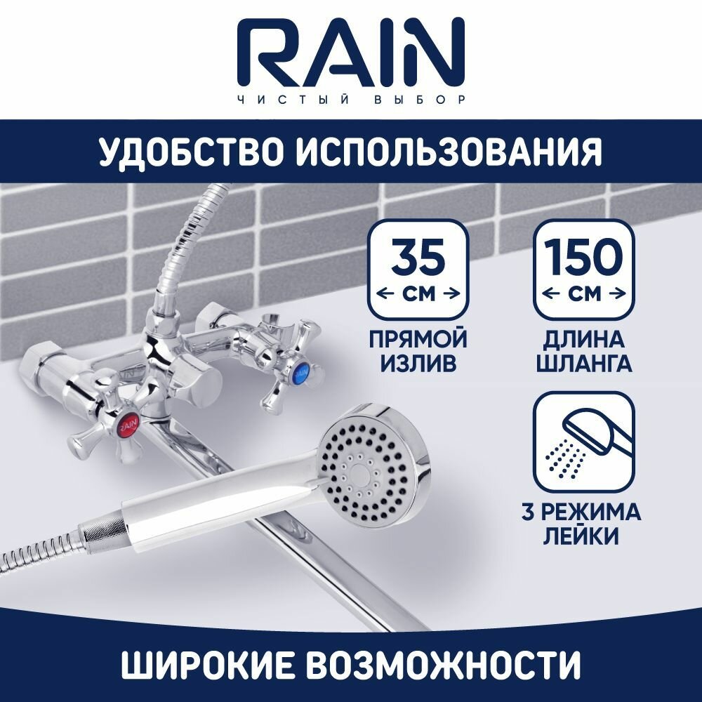 Смеситель для ванны с душем RAIN Нефрит вентильный, прямой излив 35 см, лейка и шланг для душа в комплекте: сравнение цен, характеристики, фото, актуальное наличие и цены.