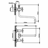 | Особенности | S-образные эксцентрики, аэратор, держатель душевой лейки, поворотный излив |