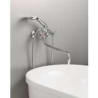 В комплекте Смеситель для ванны с металлическими вентилями, Пластиковый аэратор с функцией легкой очистки, Керамические кран-буксы, Переключатель с керамическими пластинами, Аксессуары в комплекте (шланг 1,6 м, настенное крепление, 3-функциональная лейка с функцией легкой очистки), Присоединительная группа (эксцентрики с отражателями) для вертикального крепления, Комплект присоединительных колец, Фум лента, Запасной аэратор, Ключ для снятия аэратора.