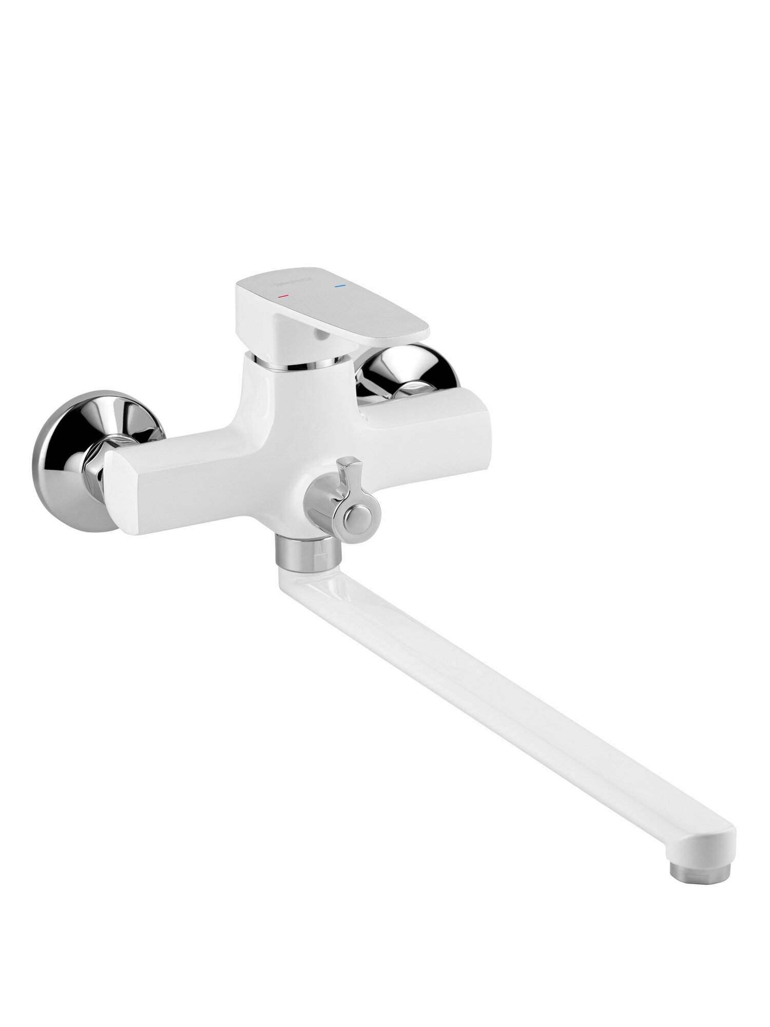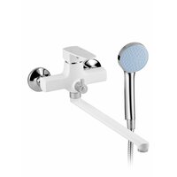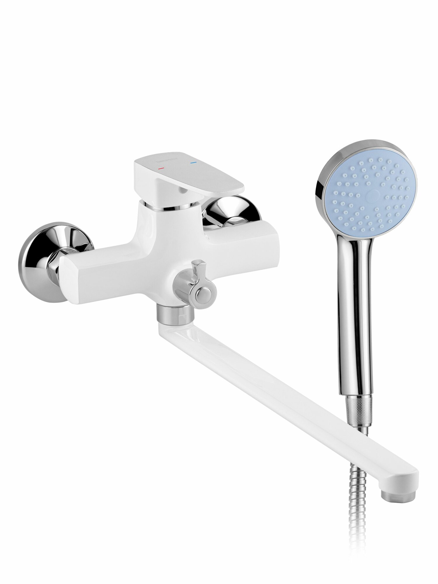 Смеситель для ванны с душем с длинным поворотным изливом, белый, квадратный корпус: сравнение цен, характеристики, фото, актуальное наличие и цены.