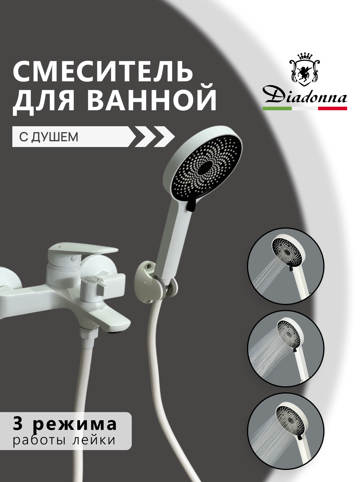 Купить Смеситель для ванны с душем с коротким изливом белый латунь с доставкой по всей России.