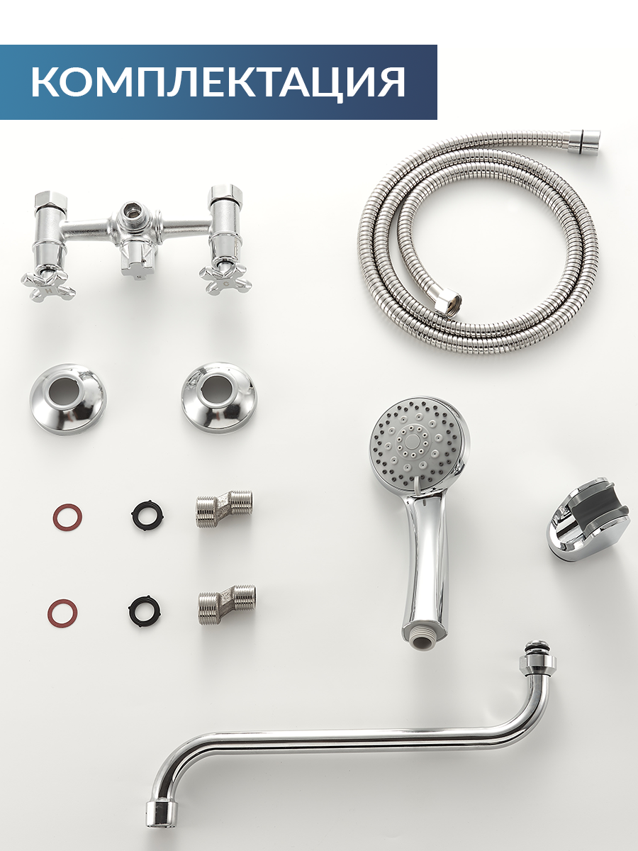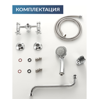 | Комплектация | гусак, держатель лейки, дивертор, излив для набора воды, лейка, набор эксцентриков, настенный держатель, отражатель, переключатель потоков, ручной душ, смеситель, шланг |