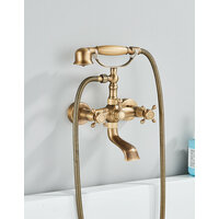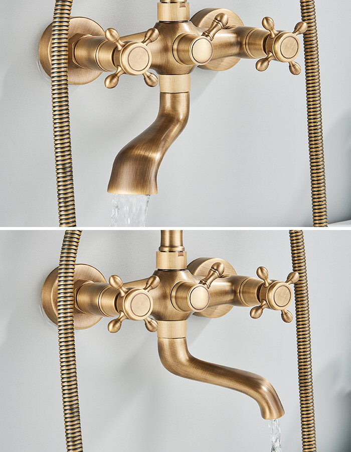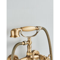 Настенный смеситель для ванны с ручным душем и поворотным изливом выполнен в стиле ретро. Отличительная особенность смесителя - это высокий держатель лейки и ручная лейка с керамической рукоятью. Поворотный излив 120 мм. позволяет комфортно наполнять ванну водой и безопасно пользоваться ванной, не переживая, что можно удариться о выступающий излив. Корпус смесителя изготовлен из высококачественной латуни, используя передовую технологию гравитационного литья и изготавливается методом прецизионной механической обработки, которая отличается прочностью и долговечностью. Смеситель оснащен фирменными керамическими кран-буксами, которые работают комфортно и плавно и полностью водонепроницаемы. Переключение потока воды с излива на ручную лейку и обратно осуществляется поворотом переключателя, расположенного в середине корпуса смесителя.