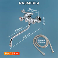 Смеситель для ванны с душем с длинным поворотным изливом NNF-0012 вентильный кран в ванную, для раковины цвет: хром