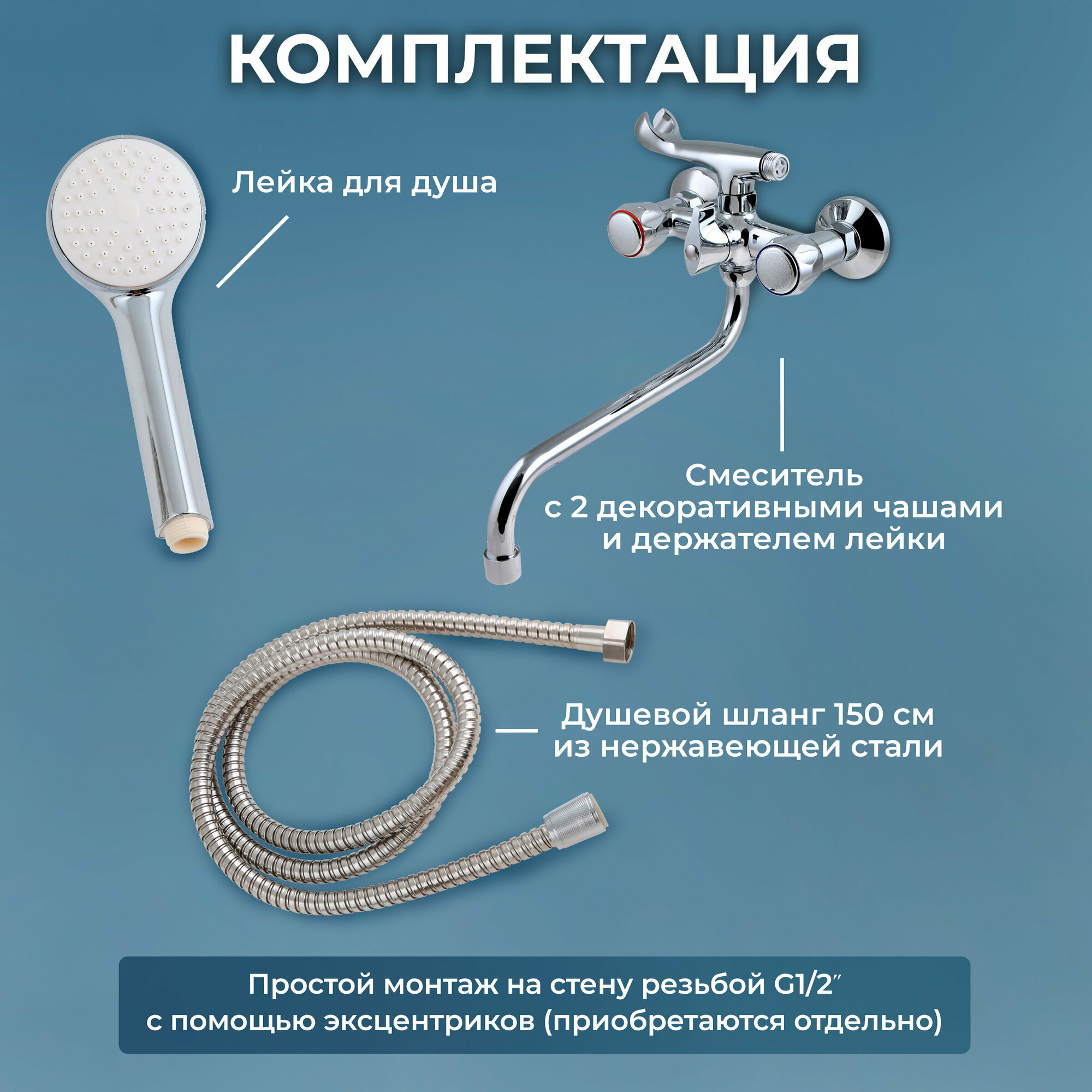 S-образные эксцентрики, аэратор, держатель душевой лейки, поворотный излив