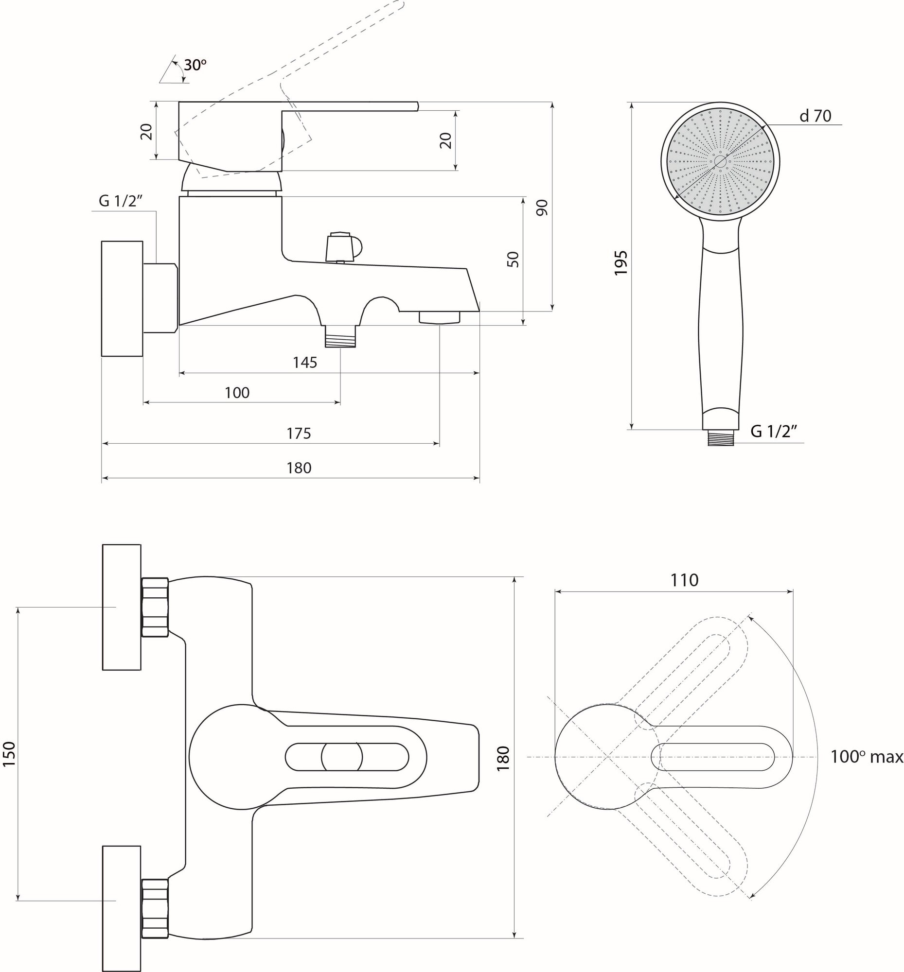 Смеситель для ванны Славен СЛ-ОД-Т30, с коротким литым изливом, одноручный: сравнение цен, характеристики, фото, актуальное наличие и цены.