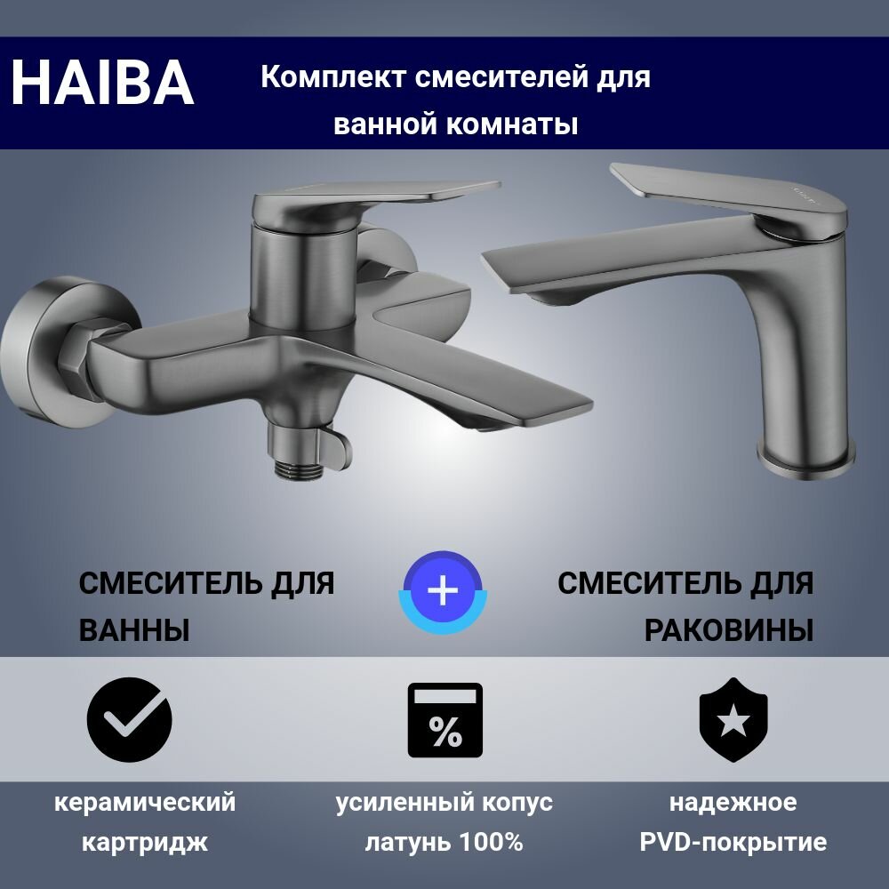 | Комплектация | Смеситель для ванны: Смеситель, аэратор, эксцентрики, отражатели, лейка, душевой шланг 150 см, держатель лейки Смеситель для раковины; смеситель, аэратор, крепление, гибкая подводка 40см |