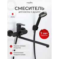 Смеситель для ванны TOKITO TAT TOK-TAT-1015BL с длинным изливом и душем латунь черный матовый