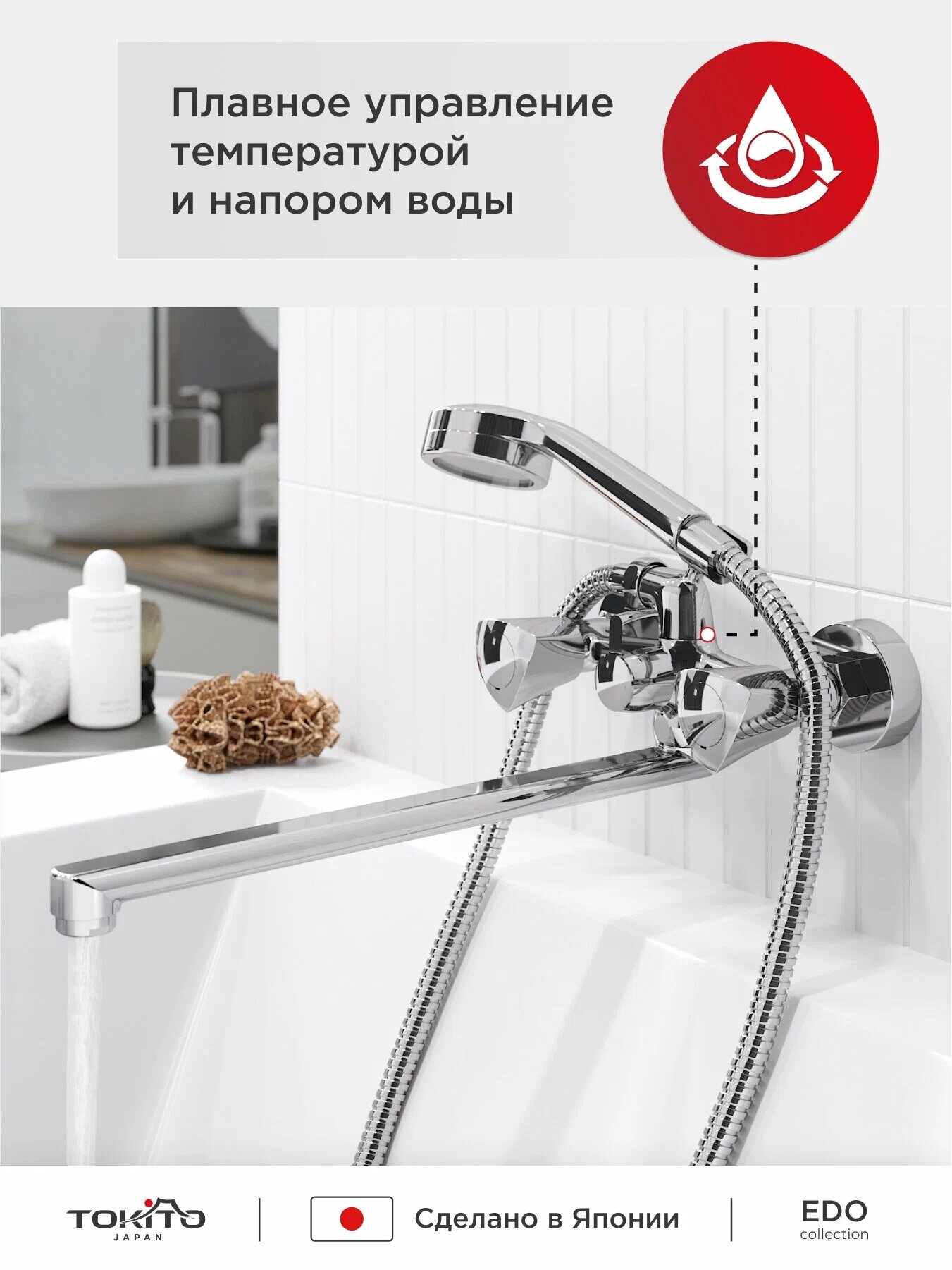 Купить Смеситель для ванны TOKITO TOK-EDO-1015 с длинным изливом, с лейкой, двухвентильный, хром с доставкой по всей России.