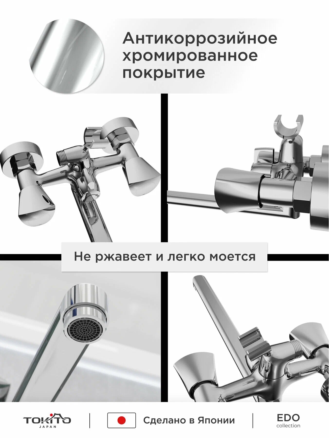 Смеситель для ванны TOKITO TOK-EDO-1015 с длинным изливом, с лейкой, двухвентильный, хром: сравнение цен, характеристики, фото, актуальное наличие и цены.