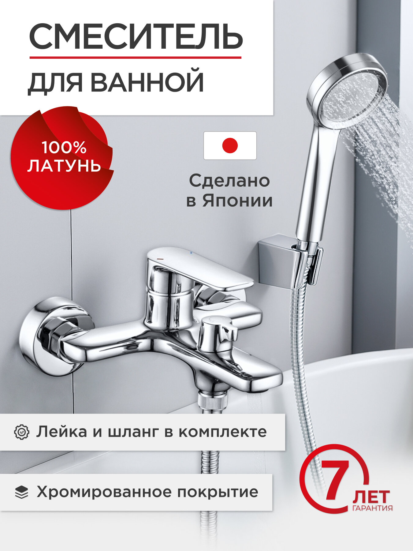 | Комплектация | Смеситель, латунные эксцентрики, шланг для душа, держатель для душа, душевая лкйка |