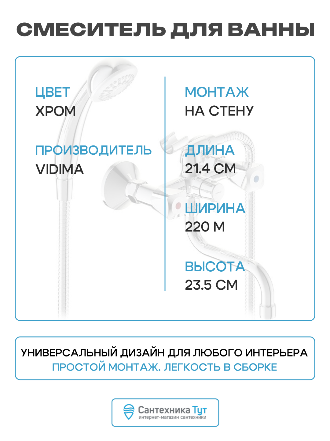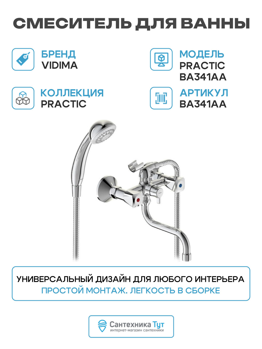 Смеситель для ванны Vidima Practic BA341AA Хром, качество и стильный дизайн: сравнение цен, характеристики, фото, актуальное наличие и цены.