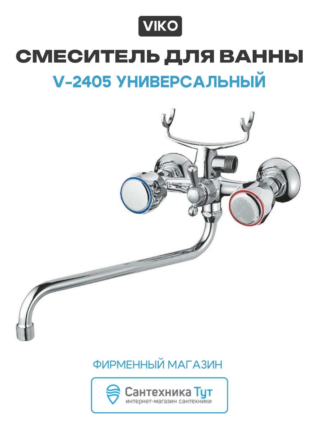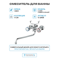Купить Смеситель для ванны Viko V-2405 универсальный Хром латунь на стену с доставкой по всей России.