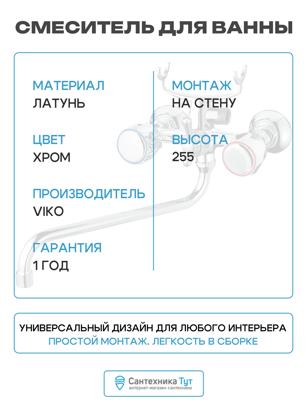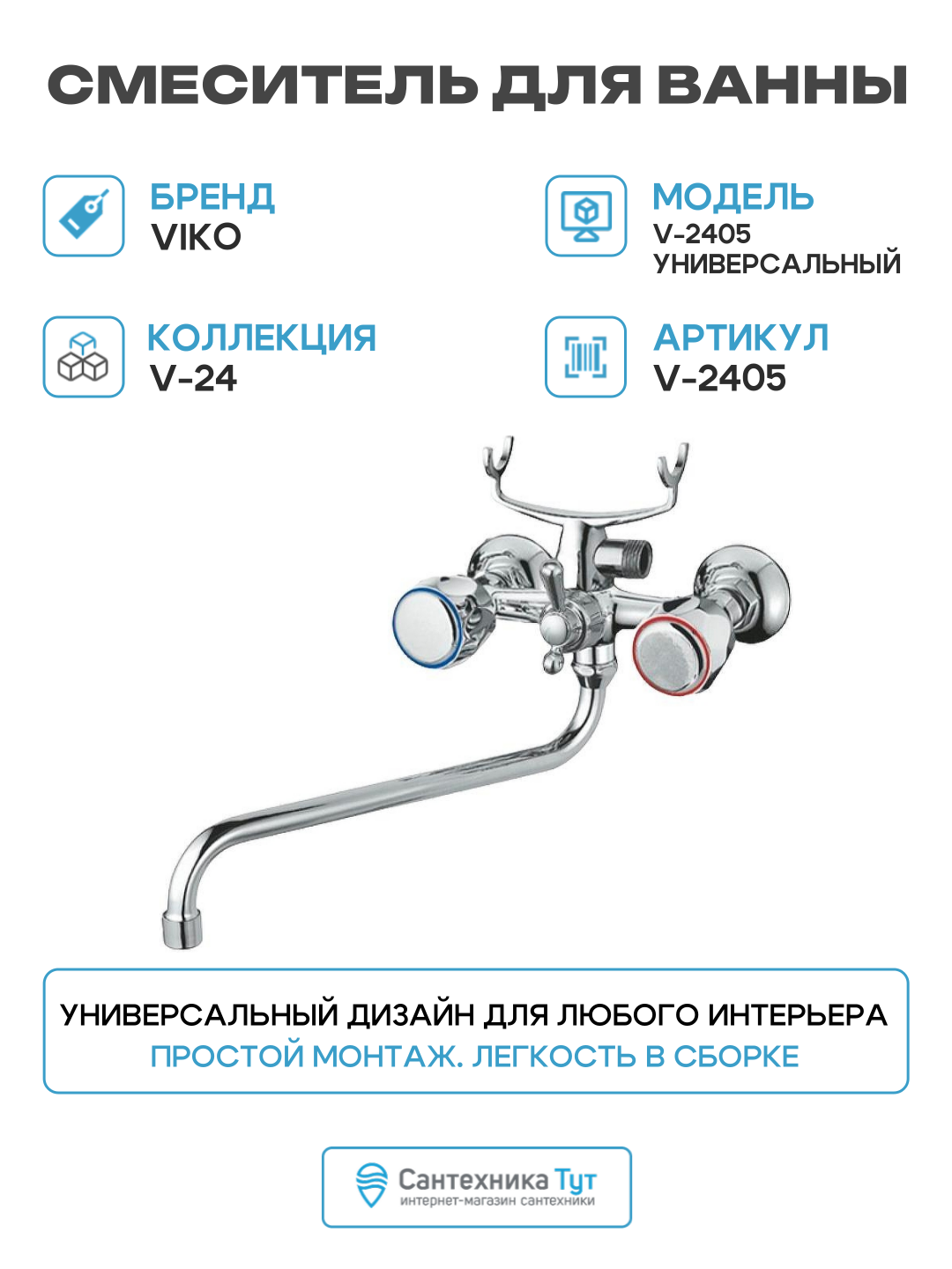 Смеситель для ванны Viko V-2405 универсальный Хром латунь на стену: сравнение цен, характеристики, фото, актуальное наличие и цены.